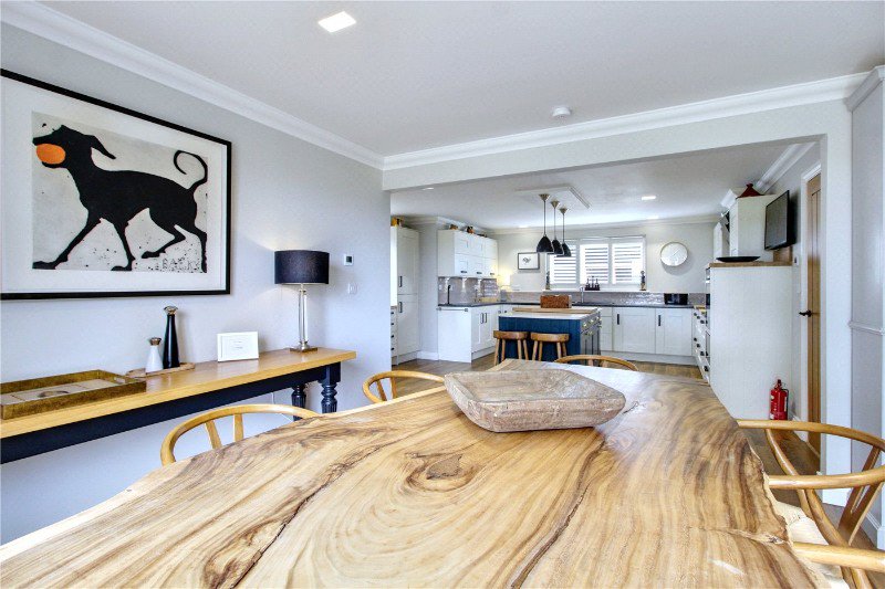 - Impressive open plan kitchen/dining/family room with bi folding doors framing far reaching views over fields and the estuary