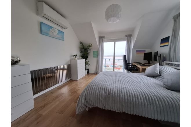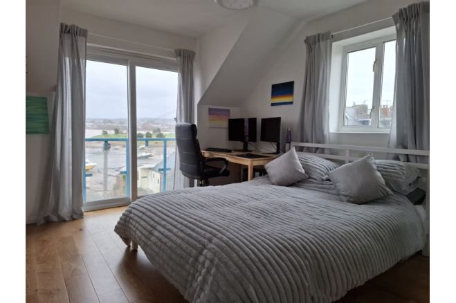 Nestled in a prime location, this beautifully presented home offers a blend of modern comfort and breath-taking natural beauty. Fully redecorated throughout, it boasts a brand-new kitchen and contemporary bathrooms, creating an inviting and stylish living space perfect for families or those seeking a tranquil retreat. The whole property has a heat recovery ventilation system with Hepa filter, so the house is airy, warm and dry throughout the whole year. There is also the benefit of Air conditioning units in the master bedroom and the living area. The kitchen/breakfast room is sure to become the hub of daily life. This superb space features a brand-new range of wall and base units, offering both style and functionality. Double-glazed sliding patio doors not only provide access to the charming courtyard garden but also offer lovely views, making al fresco dining a delight. Adjacent to the kitchen, you'll find a versatile study or fourth bedroom, perfect for working from home or accommodating guests, along with a convenient ground floor WC. Ascend to the first floor, where the sitting room immediately captivates with its stunning, uninterrupted views across the estuary. A double-glazed sliding patio door opens onto a balcony, an idyllic spot to unwind with a small table and chairs while soaking in the vista. Also on this floor is Bedroom 3, a comfortable space with a rear aspect window, and a sleek family bathroom featuring a contemporary white suite with a shower over the bath. The second floor is home to two further bedrooms, including the impressive master bedroom. Here, the spectacular estuary views once again take centre stage, showcased through double-glazed sliding patio doors with a Juliette balcony. The master bedroom also benefits from fitted sliding-door wardrobe, providing ample storage. A private ensuite shower room completes the master suite, offering a stylish shower cubicle. Bedroom 2, is also generously sized room with duel aspect.