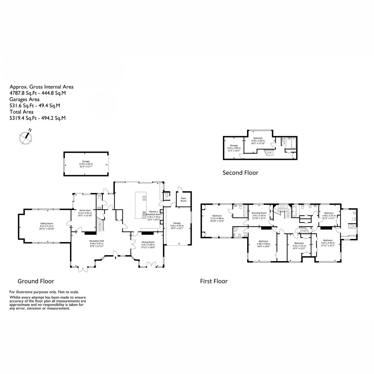 The elegant sweeping staircase leads to a spacious first floor landing with access to five double bedrooms, four bathrooms, (three en-suites) to include the principal bedroom with a double aspect, walk-thru dressing room and en suite bathroom. The two further en-suite bathrooms are again beautifully appointed and a family bathroom completes this floor. On the second floor, a further bedroom is located with a shower room and a useful storage area.