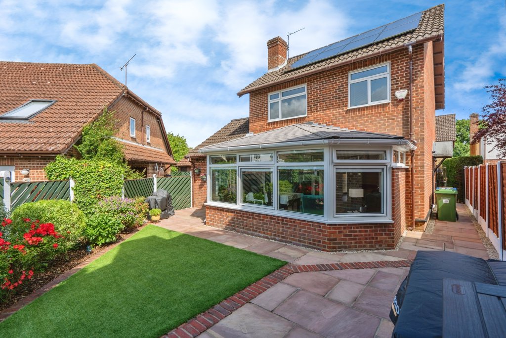 A 3 bedroom detached house situated in this popular residential crescent in Funtley. The property has been considerably improved by the present owners and is offered with the benefit of no onward chain. Internal accommodation includes an 18ft 5 lounge, 17ft 9 garden room with insulated tiled roof, underfloor heating and perfect fit blinds. The kitchen/breakfast room also has underfloor heating and integrated appliances including dishwasher, washing machine, oven, hob and extractor. There is also a downstairs cloakroom. On the first floor there are 3 bedrooms and a re-fited shower room. Externally there is a driveway to the front with off road parking with an EV charging point leading to a single garage whilst to the rear is a feature fully landscaped garden. The property also benefits from a thirteen panel solar energy system with a 9.5kWh storage battery and a 'B' epc rating.
