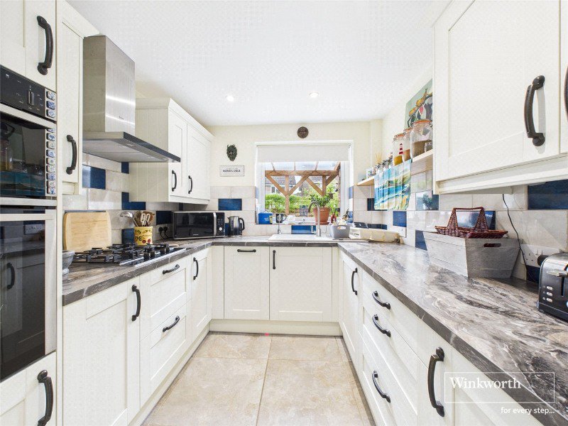 The maintained 40ft rear garden has been carefully landscaped and features a covered patio area overlooking the well-stocked flower and shrub borders. An external office/gym/chill-out room and additional storage unit further enhance the outdoor space.