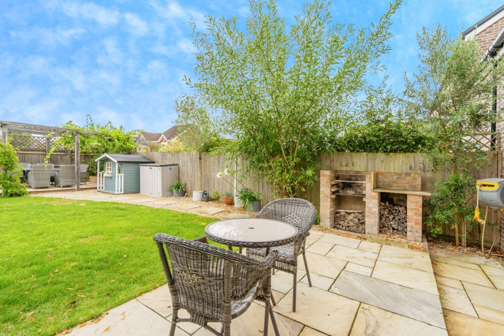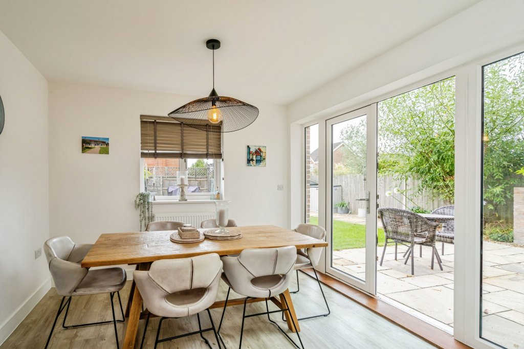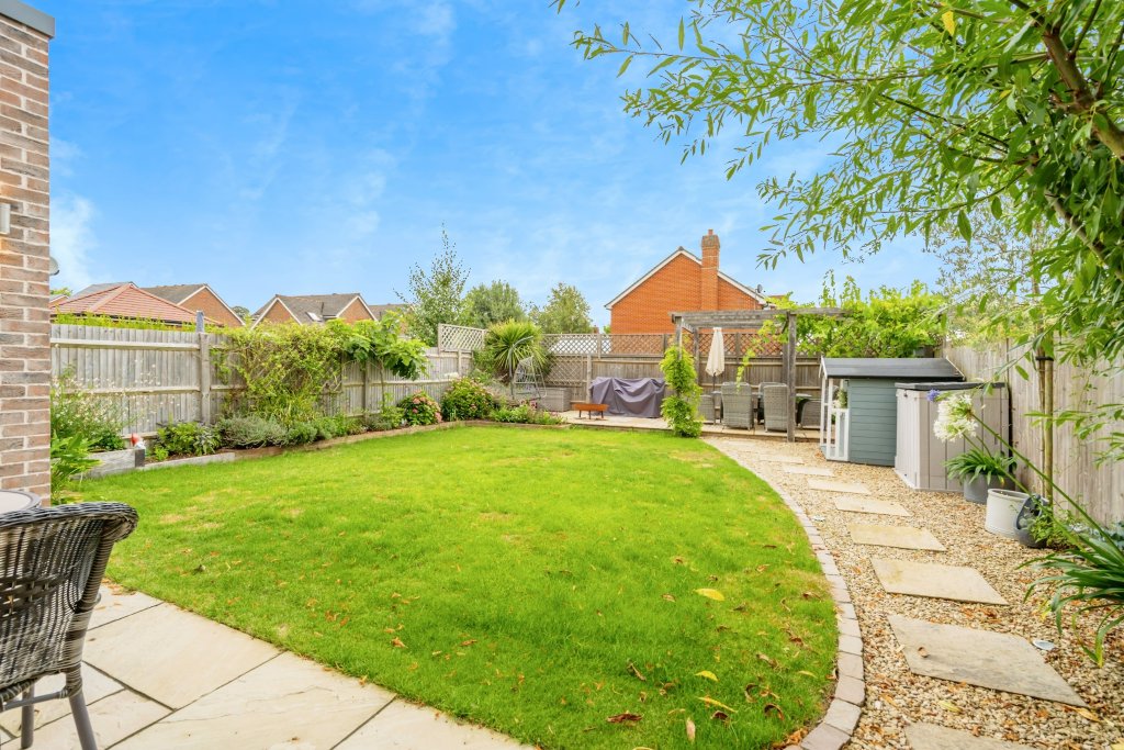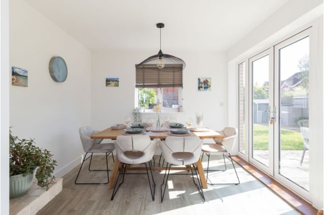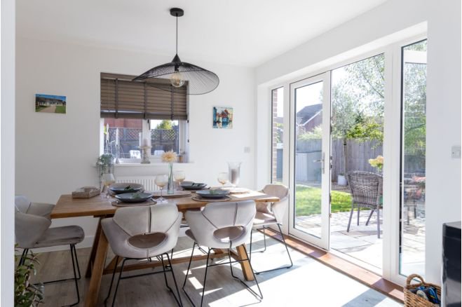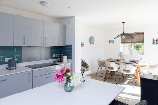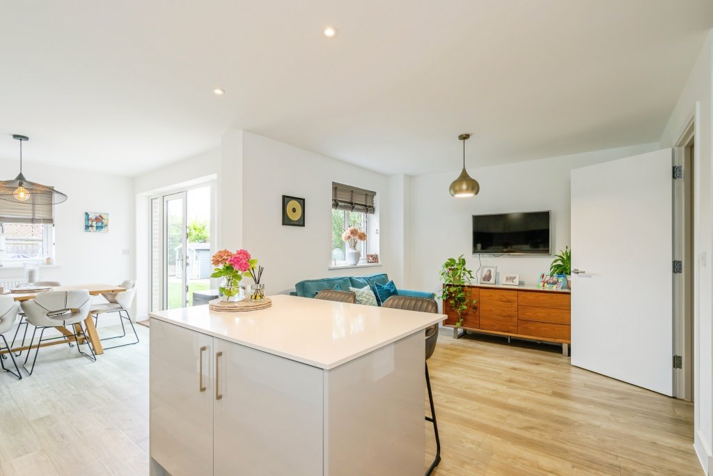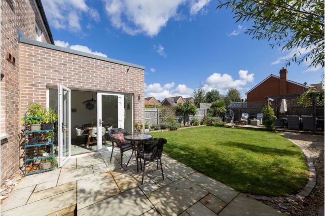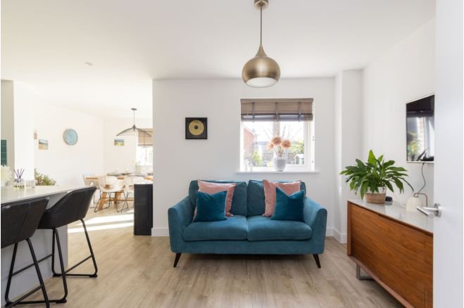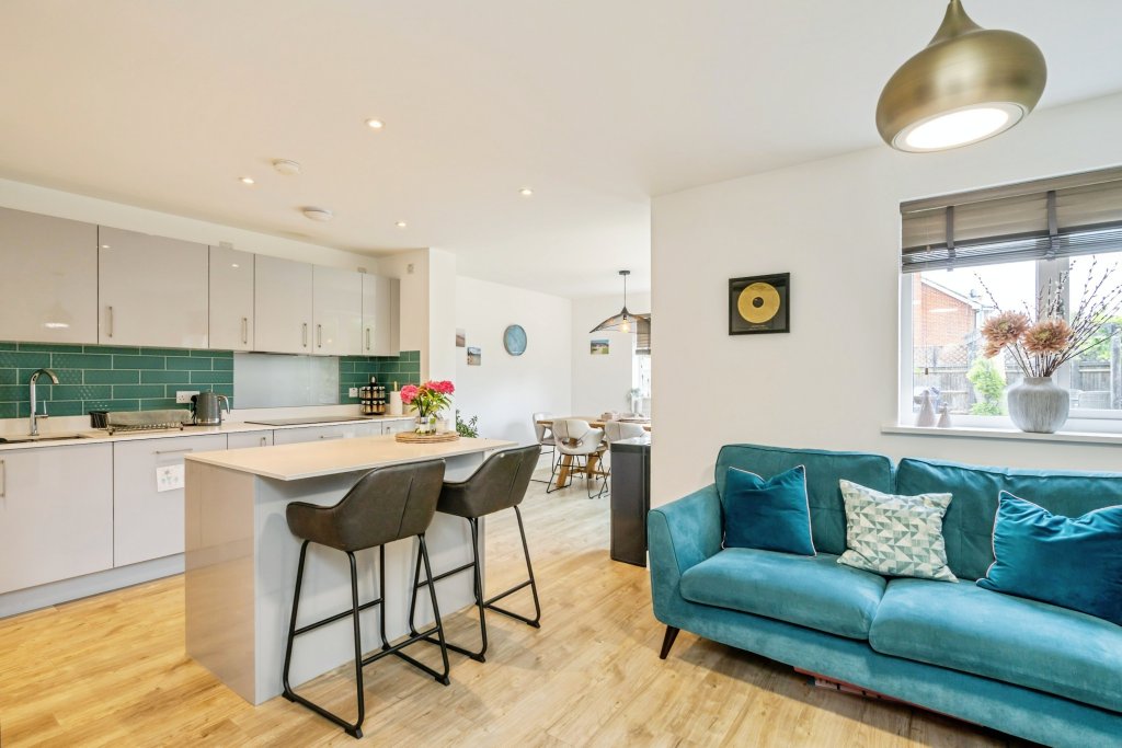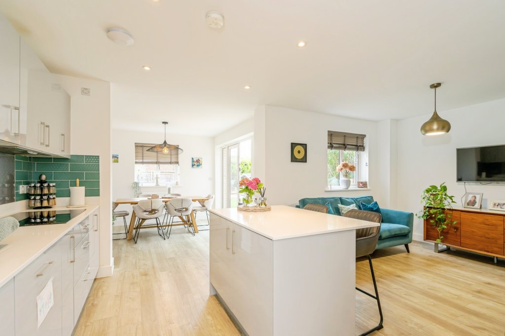 A spacious 4 bed link semi detached house situated on this highly sought after development in Chichester enviably positioned at the end of a cul de sac overlooking Keeepers Green cricket pitch. The property has been occupied by the present owners since construction in 2019 and is presented to an exceptionally high standard. Internal accommodation offers a fetaure 22ft x 20ft L shaped kitchen/dining/family room with integrated appliances and a separate utility room with integrated washine machine. There is also a living room with fitted internal shutters and a downstairs cloakroom. On the first floor there are 4 bedrooms an en-suite shower room and a family bathroom. Externally there is a driveway with parking for 2 cars and an EV charger leading to a large single integral garage. The rear garden has been fully landscaped and also has attractive outdoor lighting.