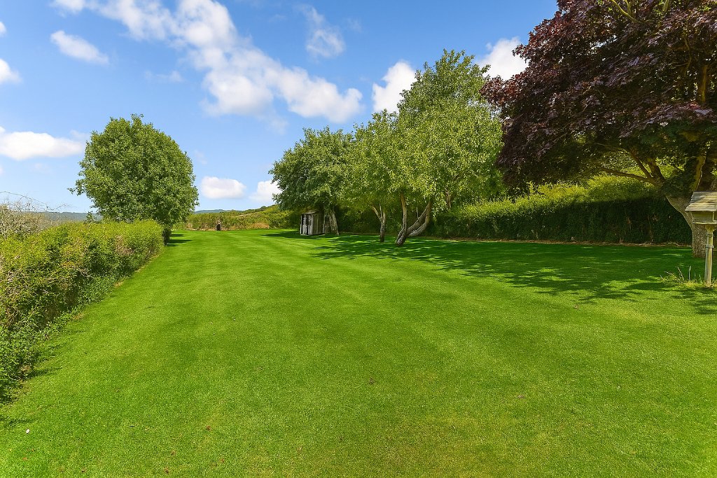 To the rear, the garden is truly exceptional—substantial and predominantly laid to lawn, with mature trees, established shrubs, and a charming garden shed. Backing directly onto open fields, the garden offers far-reaching views over the surrounding countryside and across the village of Newchurch, creating a serene and idyllic outdoor space perfect for children, pets, gardening enthusiasts, or summer entertaining.