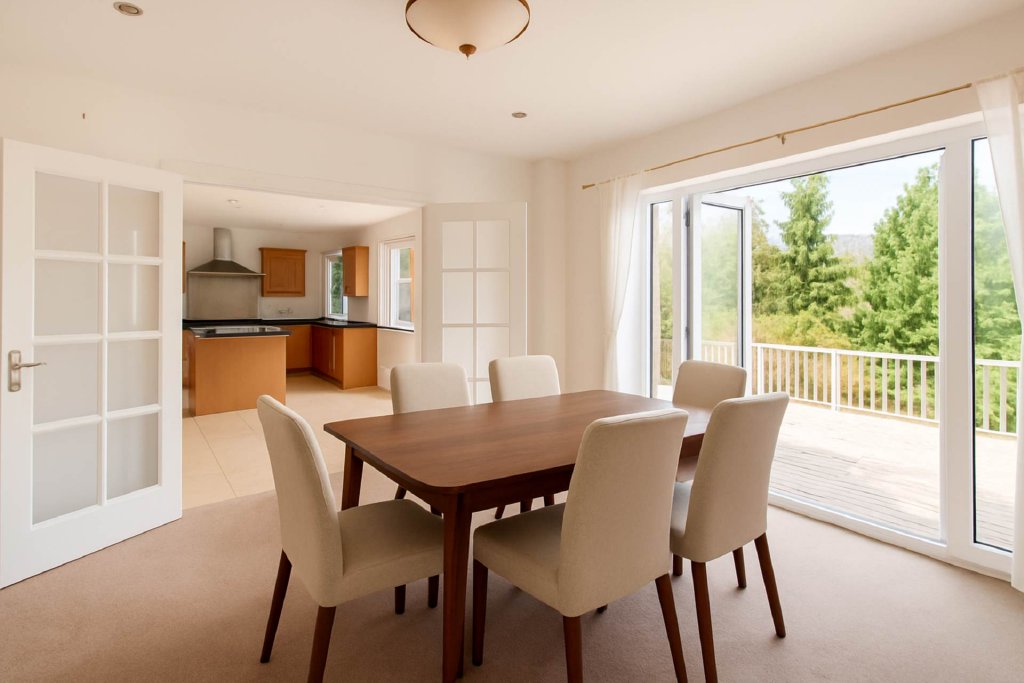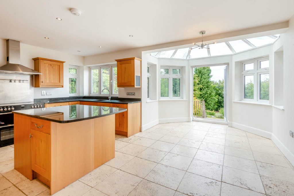 Living space is abundant, with four reception rooms offering superb flexibility for entertaining, relaxing, or working from home. The elegant living room, with its feature fireplace and dual-aspect windows, provides a warm and welcoming heart to the home. A formal dining room, family room, and separate study or snug further enhance the property`s appeal. The modern fitted kitchen is bright and well-appointed, opening into an informal dining area with French doors that lead directly to the landscaped garden, creating a seamless flow between indoor and outdoor living.