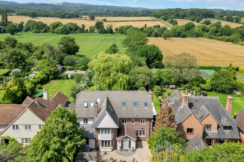 Enjoying northwest-facing views towards the picturesque Bradgate Park, this home offers an idyllic setting with mature gardens, a wrap-around terrace, and an inviting outdoor heated swimming pool, all anchored by a majestic Willow tree. The heart of the home is the impressive open-plan living kitchen, flooded with natural light from two large roof lanterns and opening through bifold doors onto the garden. A log-burning fire within the kitchen is a cosy feature and in addition are three further reception rooms including a media room/home cinema. On the first and second floors are a gym and five large bedrooms all with their own ensuite bathroom/shower room. Complementing the main house is a newly built detached double garage, store with a guest suite above with ensuite, offering excellent annexe potential.
