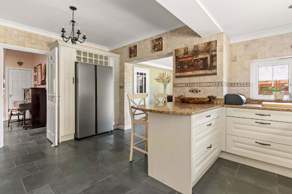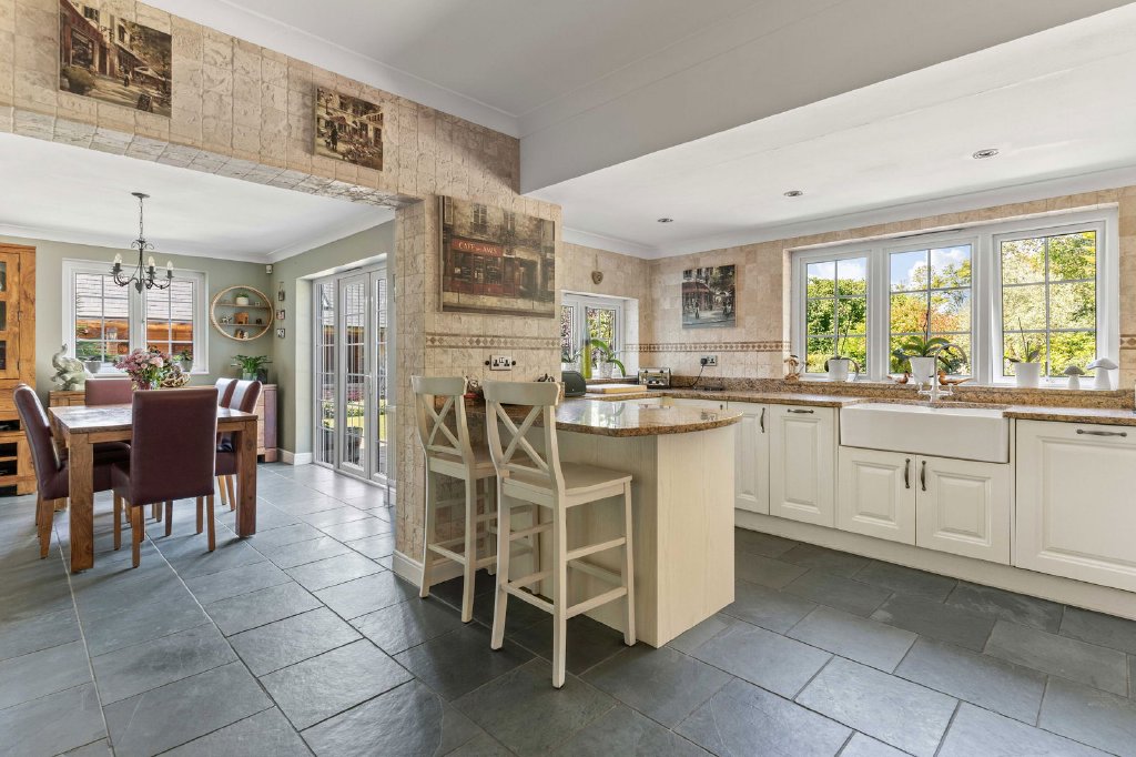 Step Inside into a welcoming enclosed porch with double doors into a spacious entrance hallway, setting the tone for the elegance and space throughout the home, which features oak floors to the ground floor. Just off the hallway, you'll find a dedicated study/home office, ideal for remote working, as well as a ground-floor double bedroom and a stylish shower room—perfect for guests or multigenerational living. The reception rooms are beautifully interconnected, creating a seamless flow for everyday living and entertaining. The living room, the main reception area, enjoys double doors opening to the garden, while the dining area features its own set of French doors, bringing in plenty of natural light. At the heart of the home, the kitchen/dining area is designed with entertaining in mind, complete with a central breakfast bar, bespoke cabinetry, integrated appliances and a slate floor for both style and practicality. A separate utility/boot room provides excellent storage and practicality, with the adjacent boiler room housing an eco-friendly Biomass boiler system—a perfect blend of efficiency and sustainability.