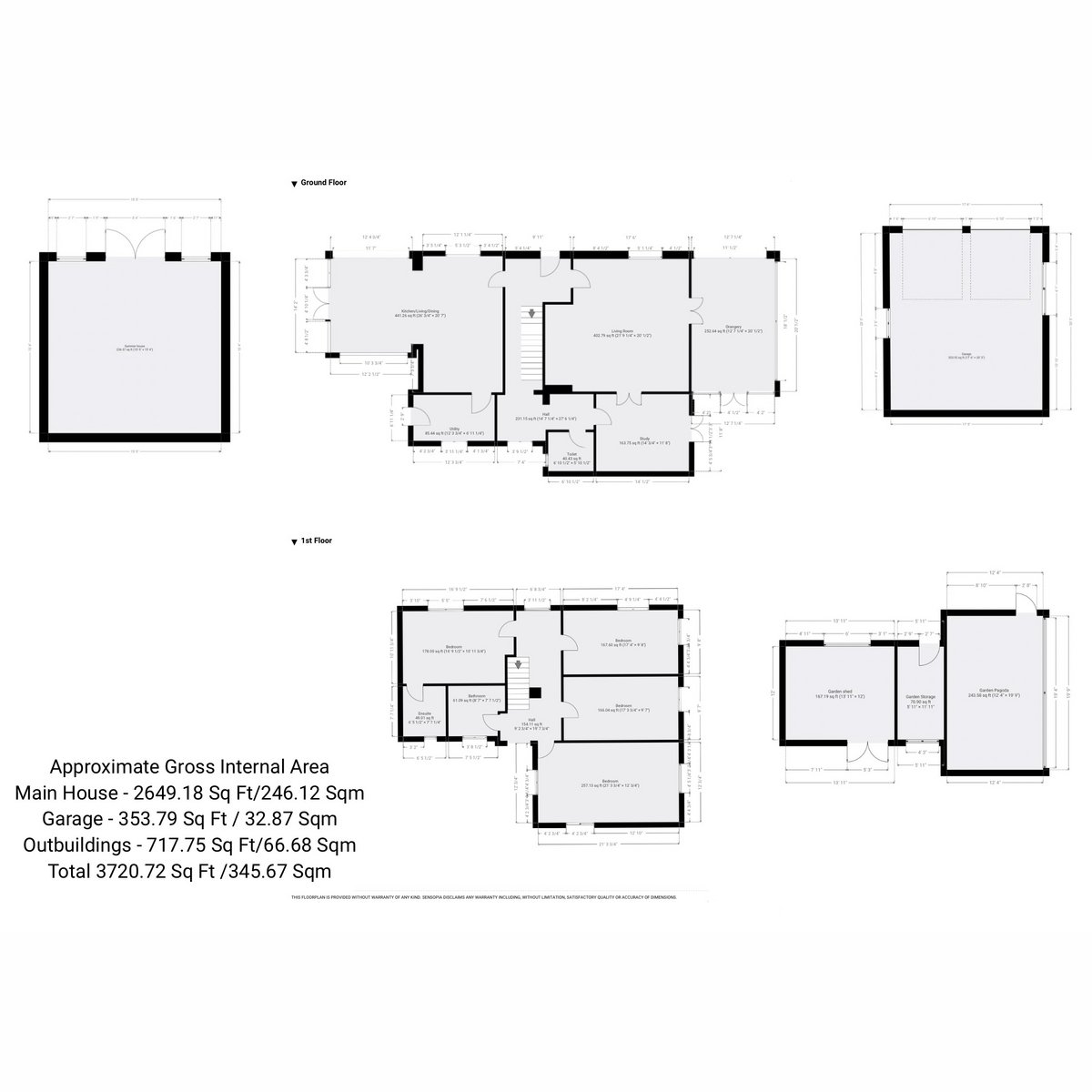 - Spacious Main Residence and Outbuildings totalling circa 3,720 sq ft