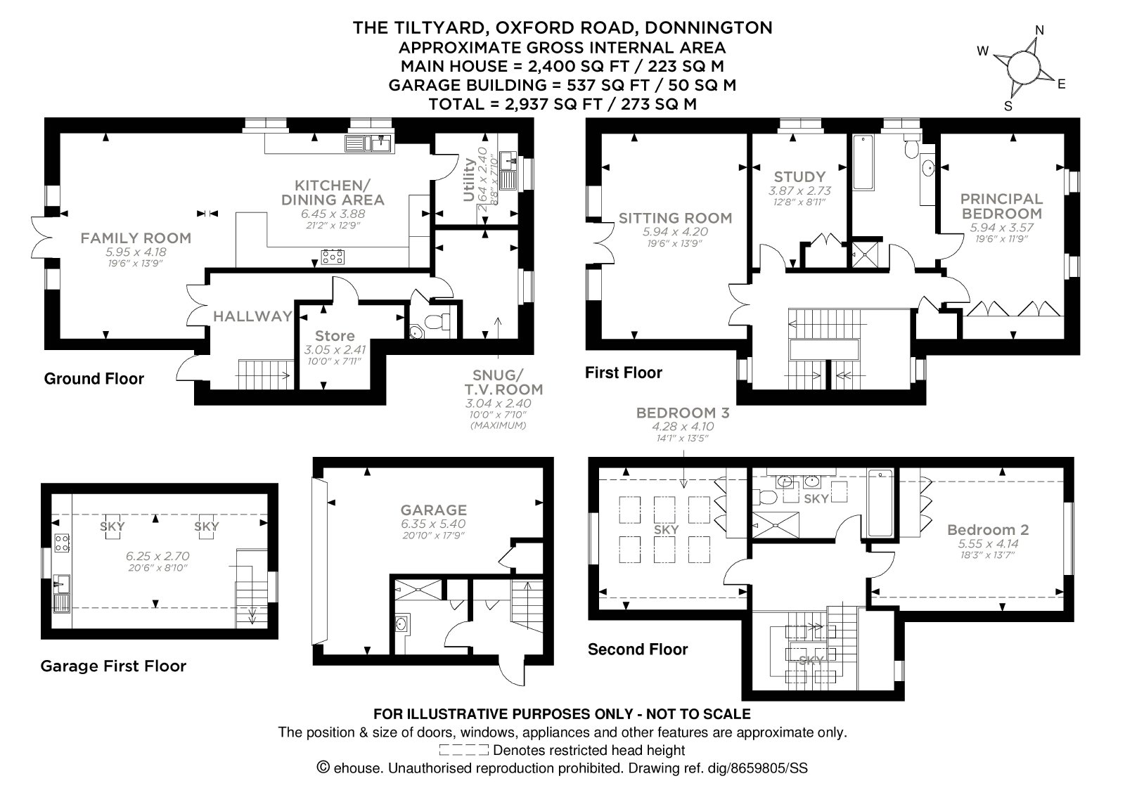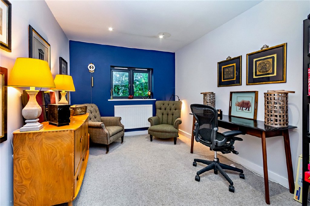 Set behind imposing electric double gates in the sought-after village of Donnington, The Tiltyard offers exceptional modern living combined with comfort, privacy, and convenience. This beautifully presented home is in excellent condition and boasts a host of impressive features, including fitted wardrobes to the principal bedrooms, new gas boiler and hot water tank, Moroccan-styled garden with low-maintenance design, independent annexe with built-in kitchen and shower room – perfect for guests, working from home, or multi-generational living, high-speed internet connection, driveway parking for up to four cars. The house provides flexible accommodation over three floors with high quality fixtures and fittings throughout. A covered porch opens to a striking triple height atrium styled entrance hall with a bespoke feature staircase. The heart of the home is the superb open-plan kitchen/dining/family room, perfectly designed for modern living, with direct access to the garden through double patio doors. A utility room, study, cloakroom, and useful store room complete the ground floor. The first floor offers a spacious sitting room with a wall of glass and French doors leading to a Juliet balcony offering stunning garden views. This level also includes two bedrooms – one with ensuite – and a flexible room currently used as a study. The second floor has two further bedrooms benefitting from large cathedral-style picture windows to maximise natural light and surrounding views, served by a generous family bathroom with both bath and shower. Overall The Tiltyard is a high-quality property offering very individual accommodation with a modern contemporary feel but also providing very practical accommodation.