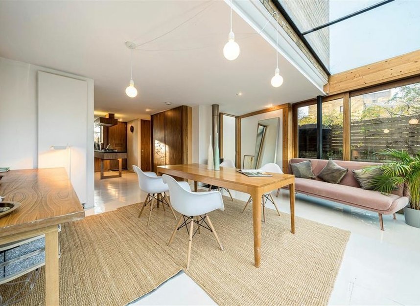 An exceptional four-story end-of-terrace residence in the heart of Greenwich, bordering the UNESCO World Heritage site. Striking mid-century modern and Scandinavian influences blend seamlessly with classic architectural elegance. This impressive four-bedroom home enjoys uninterrupted double-aspect vistas of the Royal Naval College & Queen's House, The property further benefits from off street parking.