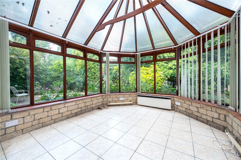 16’9 x 13’9 with sliding patio doors to the rear aspect opening through to the conservatory and window to the side aspect, comprising a range of base and eye level storage units, incorporating roll edge work surface with sink inset, integrated double oven and four ring hob, integrated dishwasher, radiator and power points.