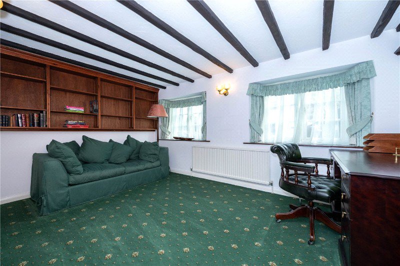 14’2 x 9’4 a great space to work from home or relax in with dual windows to the front aspect, exposed timber beams, recessed storage cupboard and walk in pantry, radiator and power points.