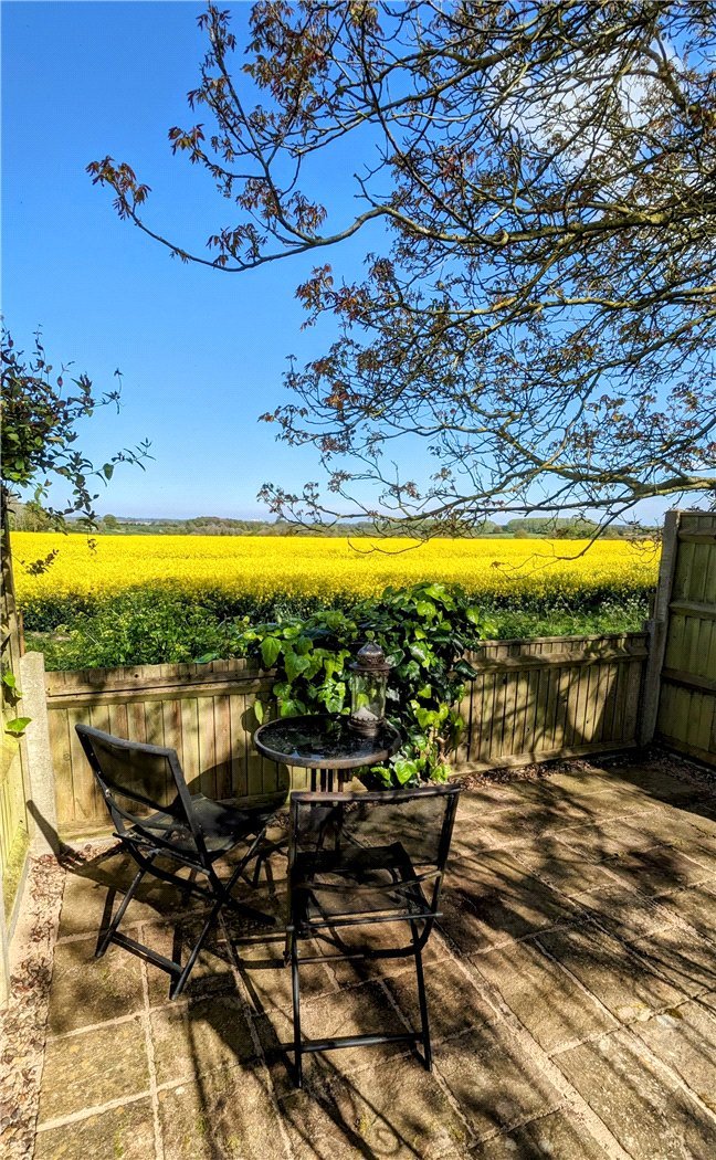 The outside space is truly outstanding: a classic country cottage garden, extending to approximately 105ft STMS, invites you to meander through lavender borders, natural grasses, and under a wrought iron arch framing breathtaking views of open Norfolk arable fields. An elevated patio seating area provides the perfect spot for alfresco dining and evening sunsets. Additional features include an attractive red brick wood store and apple trees, adding to the tranquil country atmosphere.
