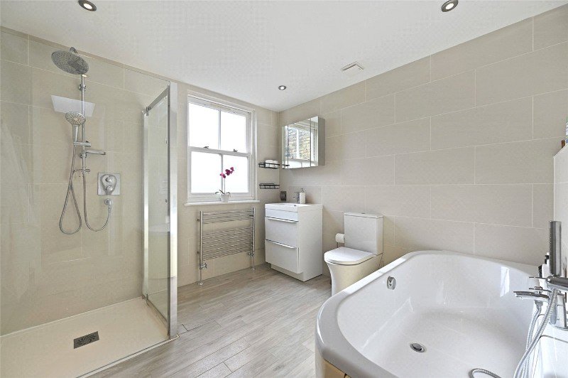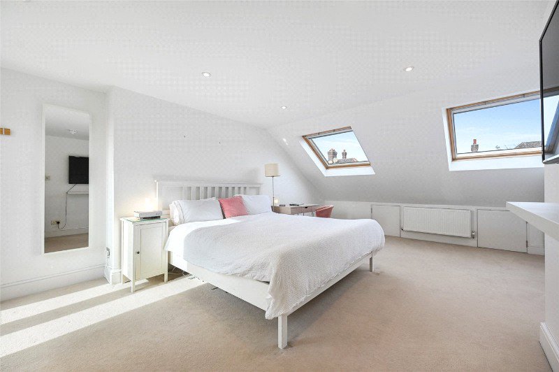 The first floor comprises three double bedrooms, and a family bathroom, as well as a separate WC. On the second floor, the house has had a substantial loft conversion to create another spacious double bedroom with an ensuite bathroom and eaves storage. Further potential exists to extend the kitchen into the side return, subject to planning permission.