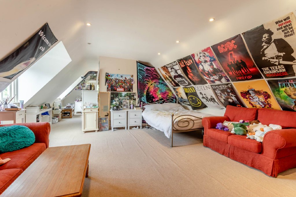 The second floor offers flexible accommodation, including a bedroom, a sitting room, a shower room, and ample storage space. A separate suite comprises another bedroom and bathroom, while the seventh bedroom makes an ideal guest room or home office with views across the garden.