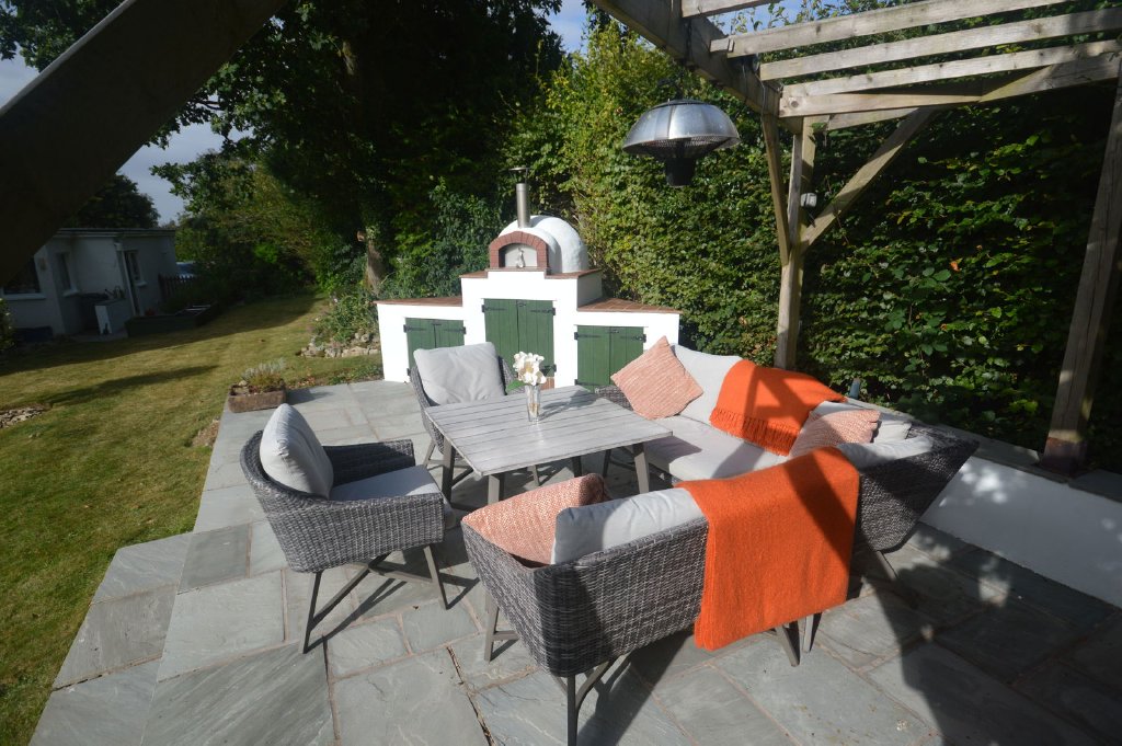 On offer is a choice of seating areas to suit the time of day and occasion; taking prime position is a paved seating area with pergola and wood fired pizza oven. The views from this particular sun trap are excellent, across the garden and away to the distant countryside. There’s also a summer house for when you’d still like to be in the garden but there’s a slight breeze.