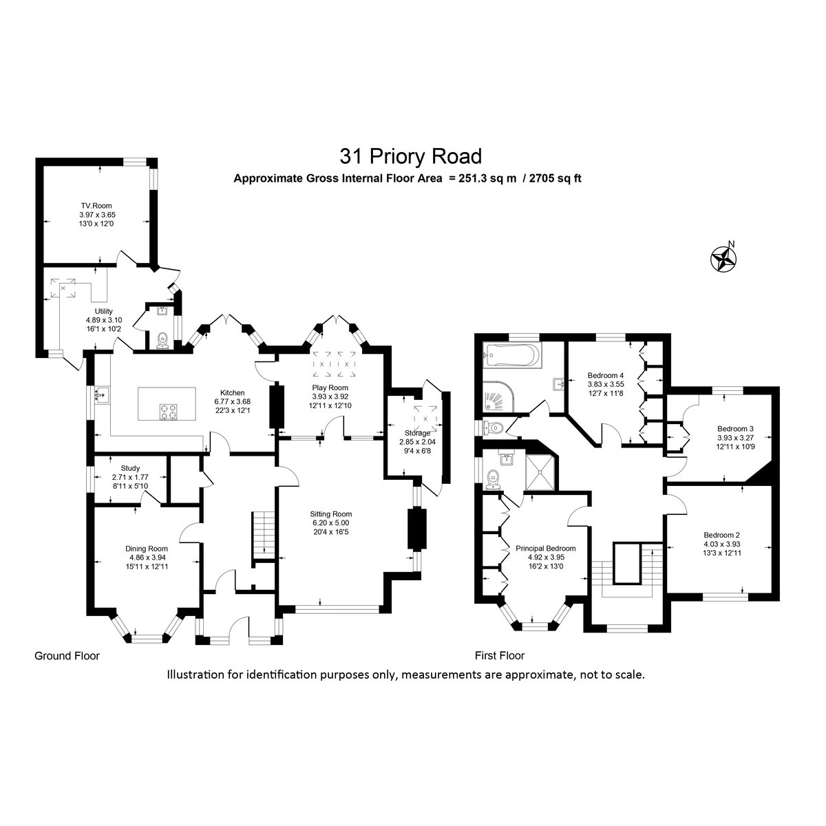 With four versatile reception rooms, a study, and a superb open-plan kitchen diner at ground floor level, the property is ideal for both family living and entertaining. The first floor provides four double bedrooms, including a principal suite, complemented by a stylish family bathroom.