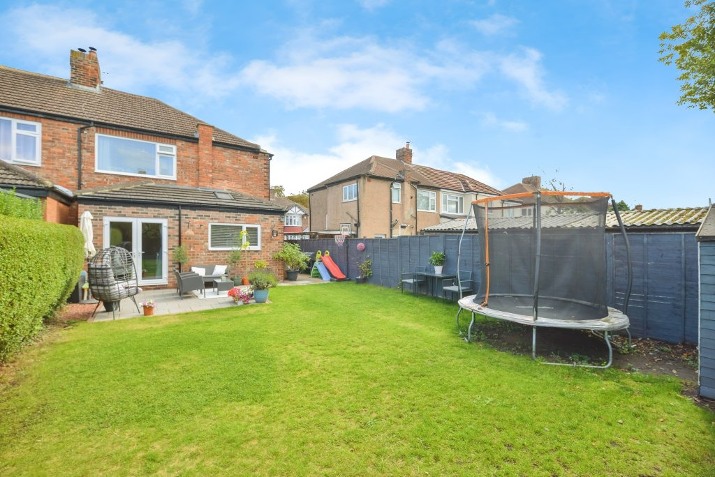 This beautifully presented three-bedroom semi-detached home is perfect for those looking for a stylish, ready-to-move-in property. From the moment you step inside, the welcoming entrance hall sets the tone, complete with tasteful panelling and a sense of character throughout. The front reception features a charming bay window, while the second reception room offers a stunning feature limestone fireplace with a log burner – ideal for cosy evenings. The modern kitchen flows perfectly into the rear garden, where you’ll find a lovely patio and a lush lawn with a rich, deep green finish – a fantastic space for outdoor dining and relaxation. Upstairs, there are two generous double bedrooms filled with natural light, along with a comfortable single room. The family bathroom is stylishly finished with a P-shaped bath, rainfall shower, and contemporary fittings. Externally, the property boasts off-street parking for two cars, a side garage, and a gorgeous rear garden. A well-kept home in great decorative order, ready for its next owners to move straight in and enjoy.
