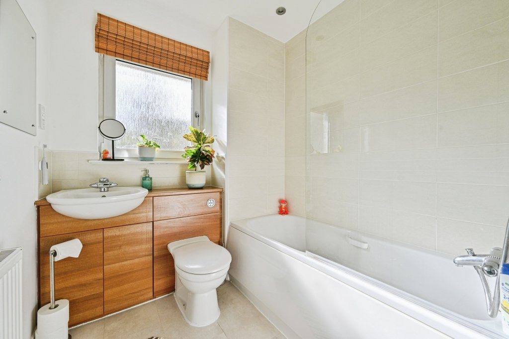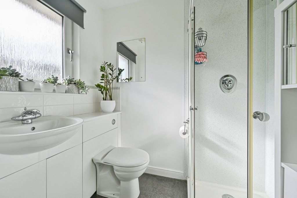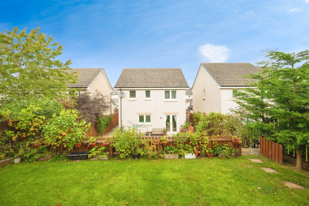 Fantastic opportunity to purchase this three bedroom detached home in sought after area of Slackbuie in Inverness . Accommodation comprises ~ Entrance hallway with W.c off . Through into the main open plan living/dining with double French doors to the rear onto the garden. This bright living space features wood flooring and neutral decor. Off the dining area is the kitchen with ample wall and base units , breakfast bar area, large walk in storage cupboard . A gas hob, built in electric oven ,integrated dishwasher and washing machine also feature. The rear garden can also be accessed by a back door in the kitchen. Within the living space is the staircase to the first floor to the bedrooms and family bathroom. Once on the bright landing on the first floor the bathroom is straight ahead. The bathroom features vinyl flooring tiled splash back behind the bath, over bath shower off the mains and wooden vanity unit with white inset sink. Next to the bathroom we have the main bedroom with en-suite shower room and triple mirrored built in wardrobes providing plenty of storage. The en-suite features a modern shower cubicle with wet wall splashback and white vanity unit. The second bedroom is a good sized double with double mirrored built in wardrobes and two large windows . At the end of the hall is the third smaller double bedroom currently used as a home office. A linen cupboard can also be found on the landing. To the front of the property is a driveway for two vehicles in front of the integral garage. An area laid to lawn with shrubs and path adjacent leads to the house . To the rear of the property is a fantastic split level garden with slabbed patio area at the lower level, lawn area then steps up to a decked area , separated by attractive planting. The garden wraps around to the front separated by a gate at one side and a storage shed at the opposite end.