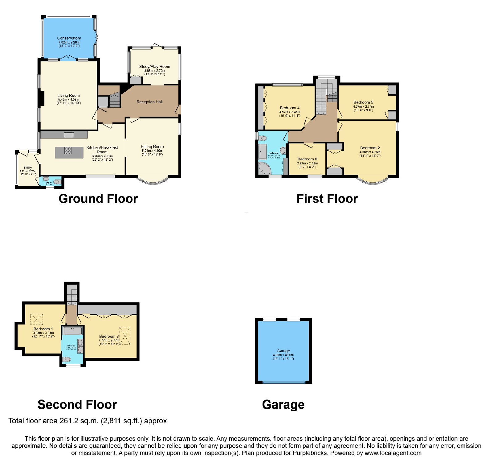 Stunning six bedroom detached family home with off street parking, garage, and glorious garden, superbly situated in a prestigious residential location. The property offers beautifully maintained accommodation, with flowing living space, luxury interiors and elegant finish throughout - the perfect blend of comfort and convenience for a modern lifestyle. Features include three bright and spacious reception rooms, sunny conservatory with garden views, well equipped eat-in kitchen/diner with separate utility, two bath/shower rooms (one en-suite), guest WC, gas central heating, double glazing, and quality floor coverings. Externally, the garden provides the perfect space for al fresco entertaining, mainly laid to lawn with patio area to house, and mature borders bursting with shrubs, trees and flowers. Accommodation comprises a wide entrance hall leading into three separate reception rooms, all dual aspect, offering versatile living and dining space, with access to the conservatory from the largest room. The well equipped kitchen, with access to utility and guest WC, comprises a quality range of fitted wall and base units with work surfaces and central island, incorporating inset sink unit, induction hob with inbuilt extractor, wall mounted oven, and further integrated appliances. To the first floor, there are four well proportioned bedrooms – with dressing area to the sumptuous principal bedroom - plus a family bathroom with corner bath suite and separate shower unit. The second floor provides a further two double bedrooms, one with en-suite shower. ** To book a Viewing it's simple, just visit the Purplebricks website or download our App. Hit the viewing request button 24 hours a day. Viewings can also be booked and confirmed instantly 24/7, just click on the full details, click on the Brochure Tab at the bottom of this Advert, and hit the viewing button **