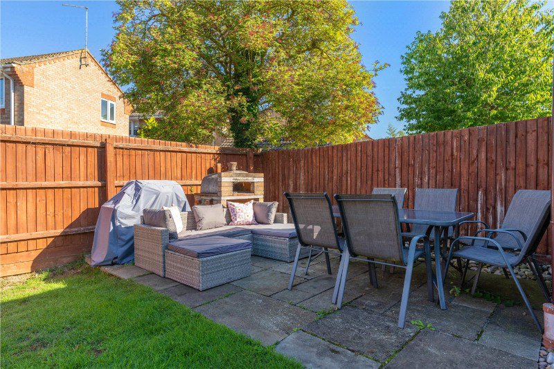 A great position toward the end of a popular enclave, equidistance to local schools and town, with open greens close by for the dog. The frontage is partially enclosed by hedging with neat lawns and long driveway with parking for three vehicles and leading to a detached SINGLE GARAGE with up and over door. Gated access to the rear gardens which are enclosed by panel fencing and mainly laid to lawn with paved pathway to rear patio seating to catch the last of the summer sun, ideal for entertaining.
