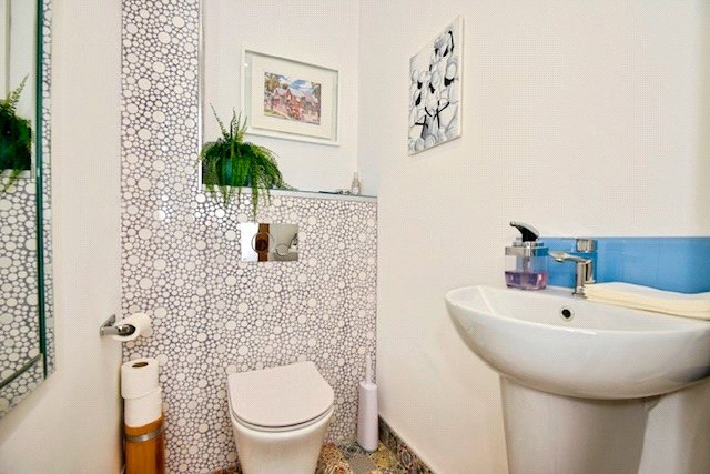 Entrance Hall A spacious, fully glazed oak and tiled entrance porch welcomes you into the hallway, which features underfloor heating. There is a fitted double wardrobe with mirrored sliding doors for storage and a cloakroom equipped with a contemporary white suite, also benefiting from underfloor heating.