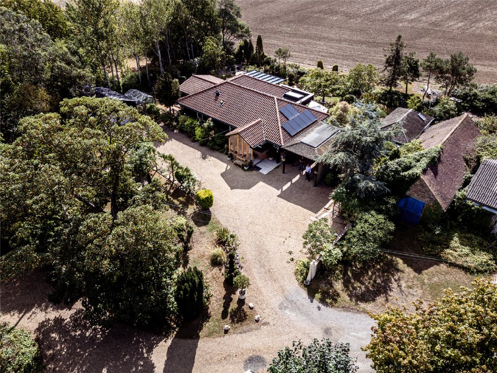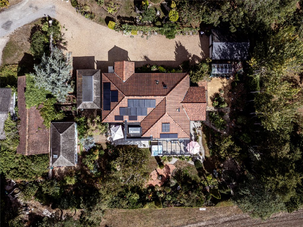 Plotters is equipped with modern conveniences, including triple glazing, high-density insulation, an air source heating/air conditioning system, a 21-panel solar PV array that supplies most of the property's electrical needs, and an electric vehicle charging point.