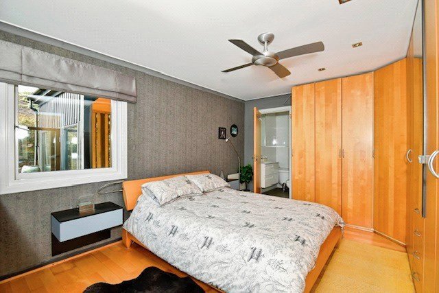Main Bedroom 12'2" x 11'9" (3.7m x 3.58m). The main bedroom overlooks the beautiful rear garden and features an oak door leading into a spacious double room with dual aspect views. It includes a ceiling fan/light and fitted wardrobes along two walls.