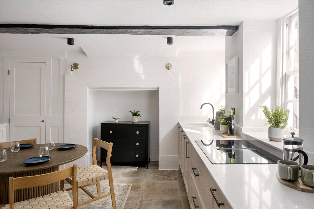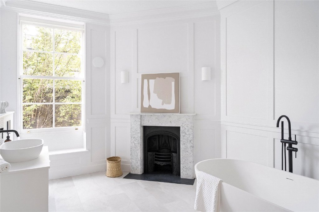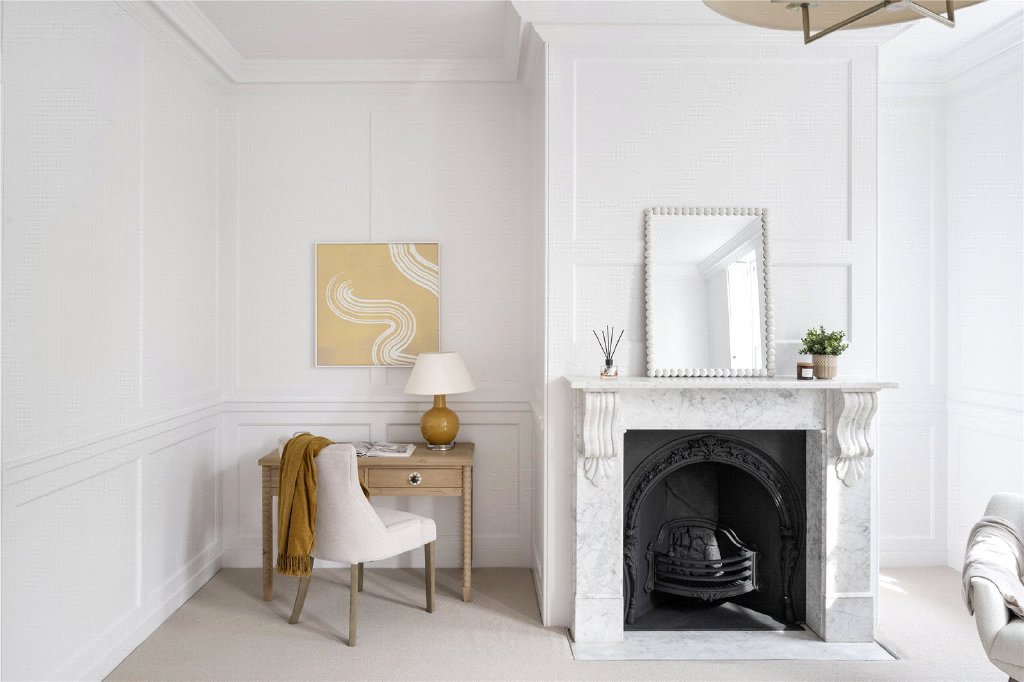 Once serving as offices for Fuller’s Brewery, the buildings have undergone a careful transformation, returning them to their original residential purpose. Spanning four generous floors, each home combines classic Georgian proportions—high ceilings, tall sash windows, and original fireplaces—with high-quality contemporary finishes, creating interiors that seamlessly blend heritage and modernity.