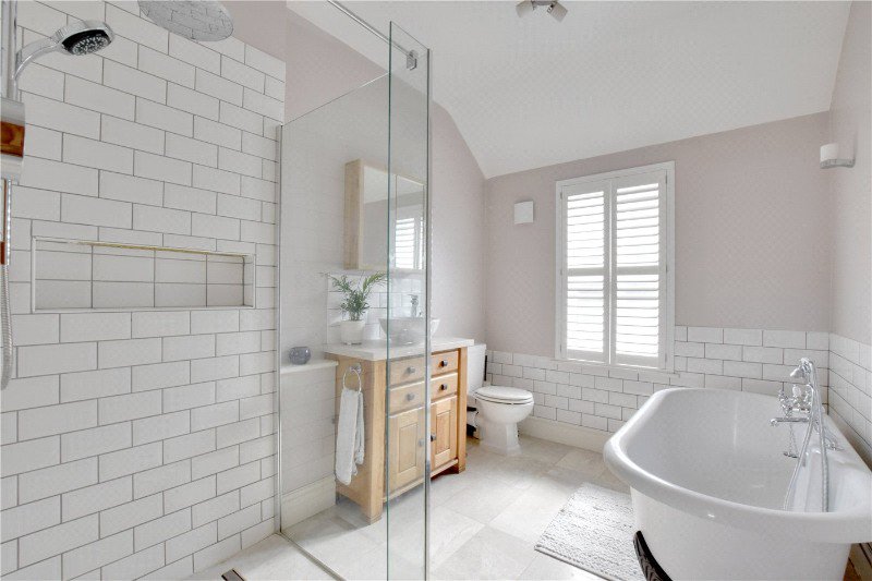 With loft conversion and recently redecorated, the accommodation briefly comprises of four to five bedrooms, with the fifth room being either a smaller guest room or study. There is a lovely reception on the ground floor with feature fireplace and bespoke window shutters and a large kitchen diner to the rear which in turn leads via French doors onto a south facing paved and newly landscaped garden, which incorporates a large shed. There are two beautiful family bathrooms, a separate WC on the ground floor and plenty of storage.