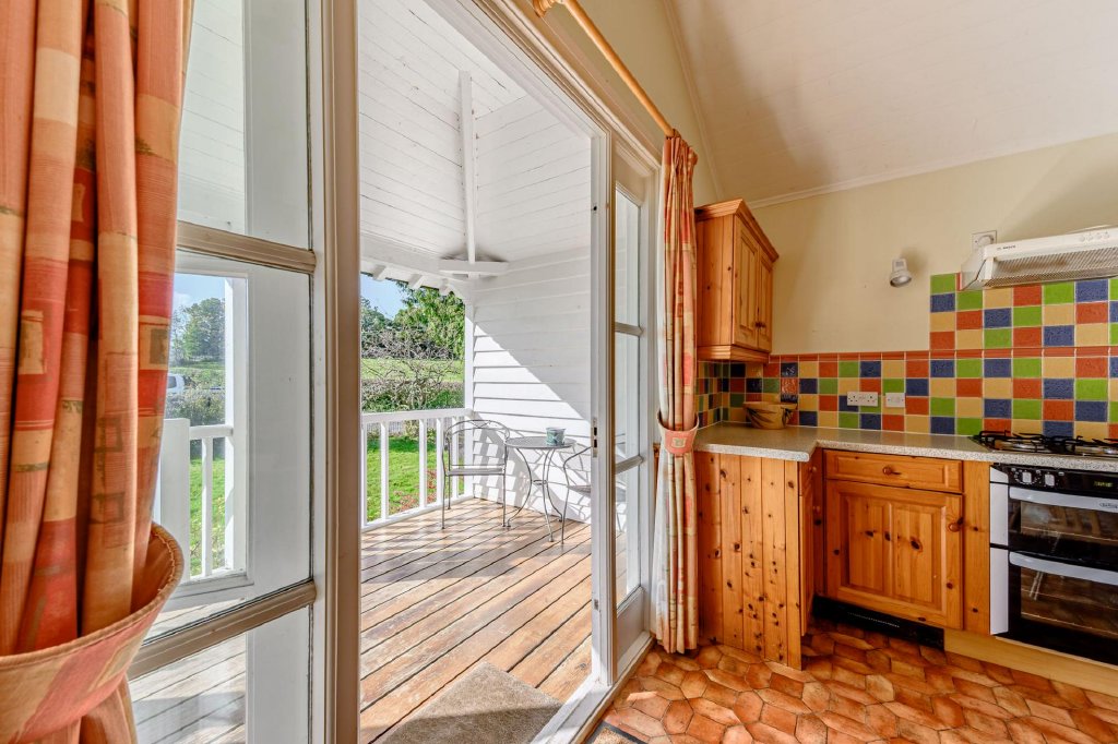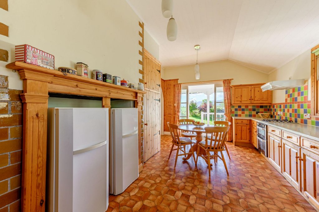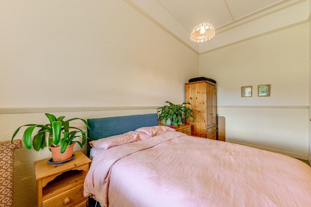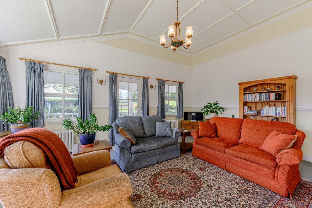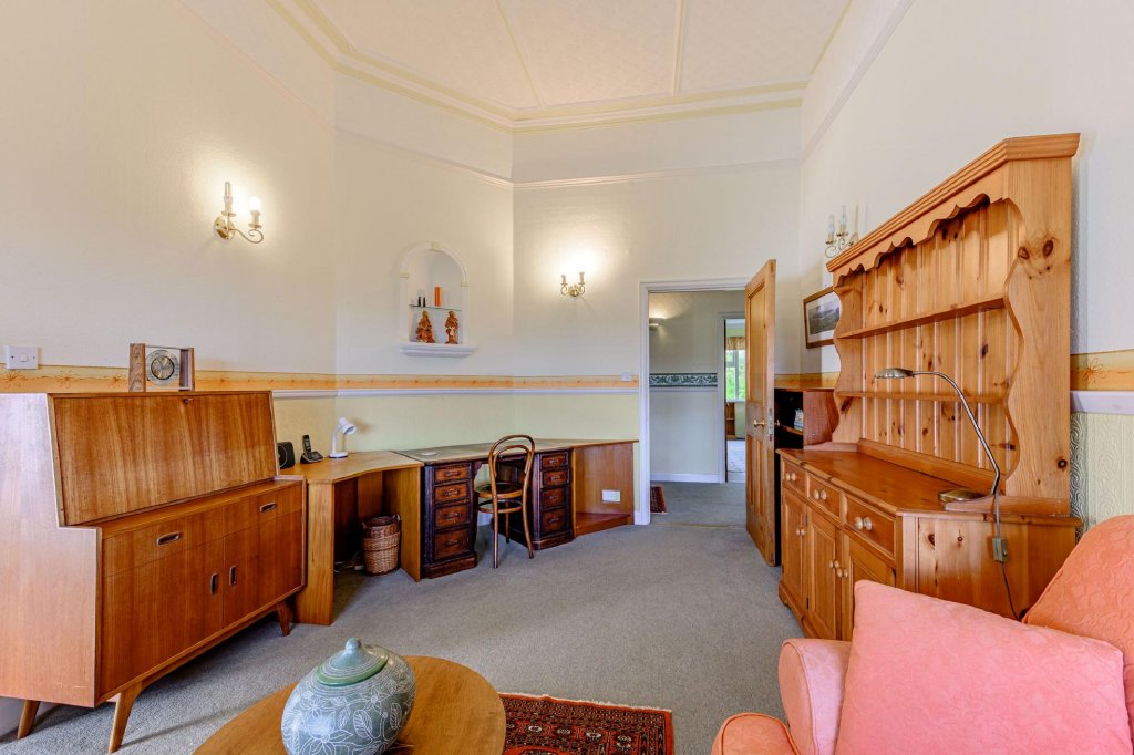 A generous living room offers plenty of natural light having a large expanse of windows on both external walls. A glazed door also offers access to the veranda. The original fireplace remains a focal point but is currently unused. An electric, gas or log burning stove could easily be installed here for additional heat. A semi pitched ceiling adds character and its beautifully detailed.