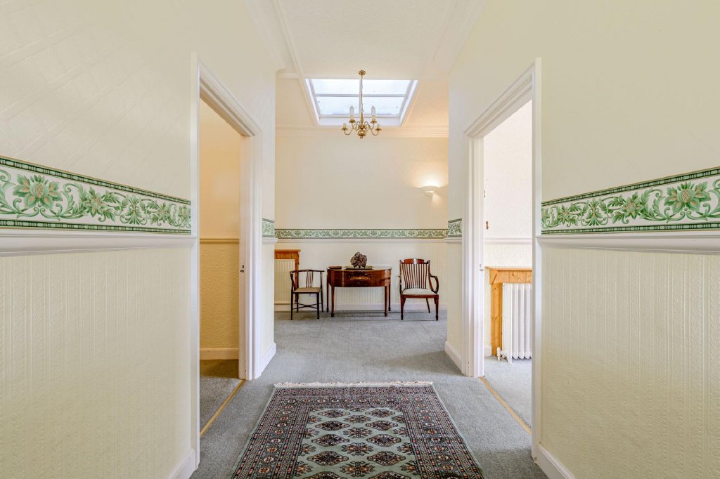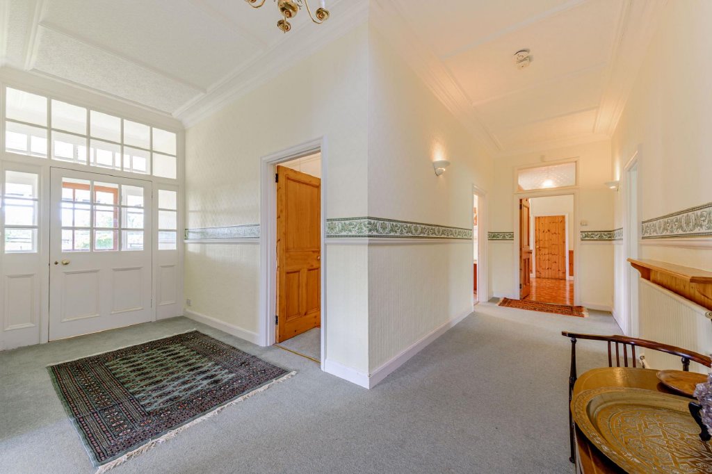 As soon as you step onto the veranda of this property it feels special. Entering through the large front door, the spacious hallway is flooded with light, thanks to a large roof light. High ceilings also help give this property a light and airy feel.