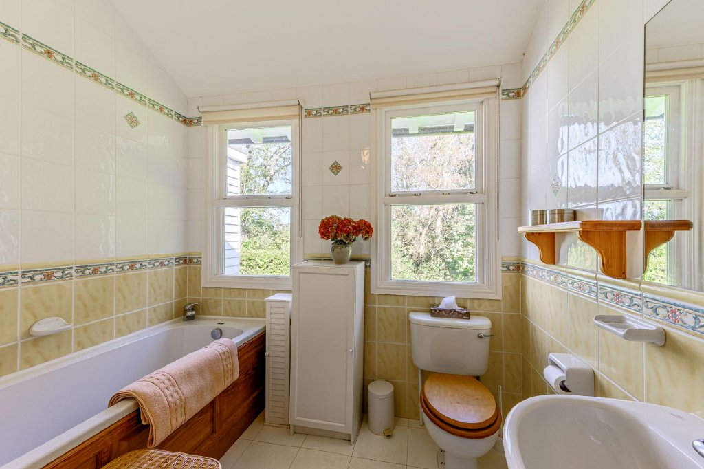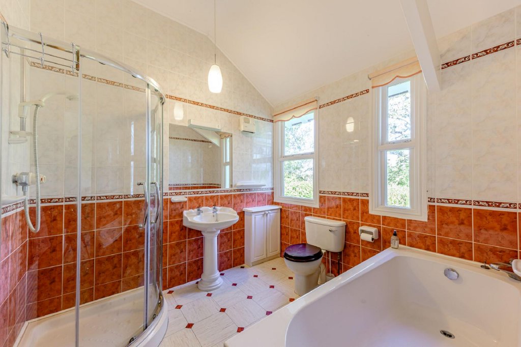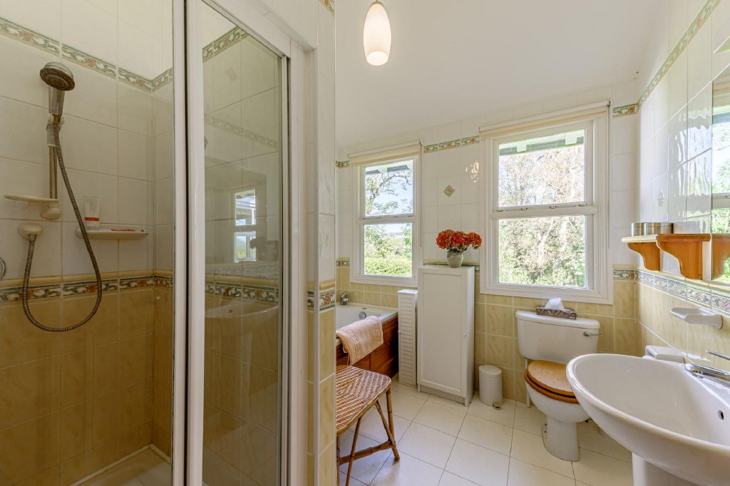 Fell Garth features three double bedrooms, each with character. The primary bedroom is a generous space and offers a walk in dressing area plus a large en-suite bathroom with separate bath and shower. Expansive windows take up the entire end wall of this room offering beautiful, elevated views, of the garden and woodland. The family bathroom is tiled floor to ceiling and features a separate bath and shower.