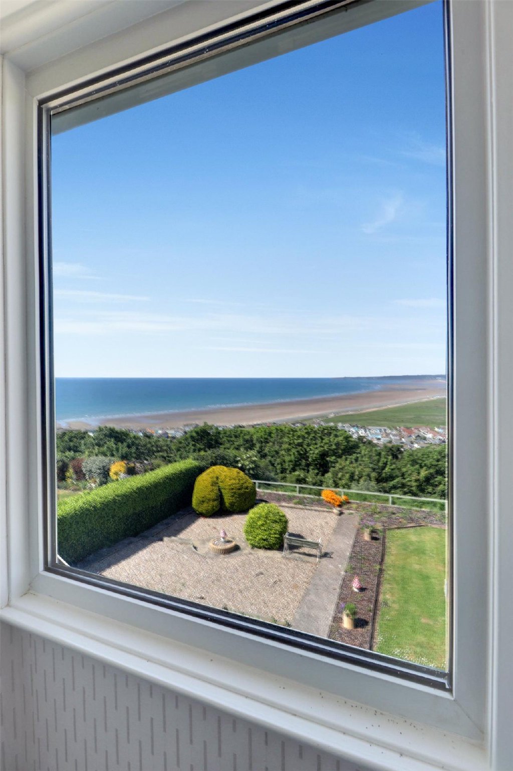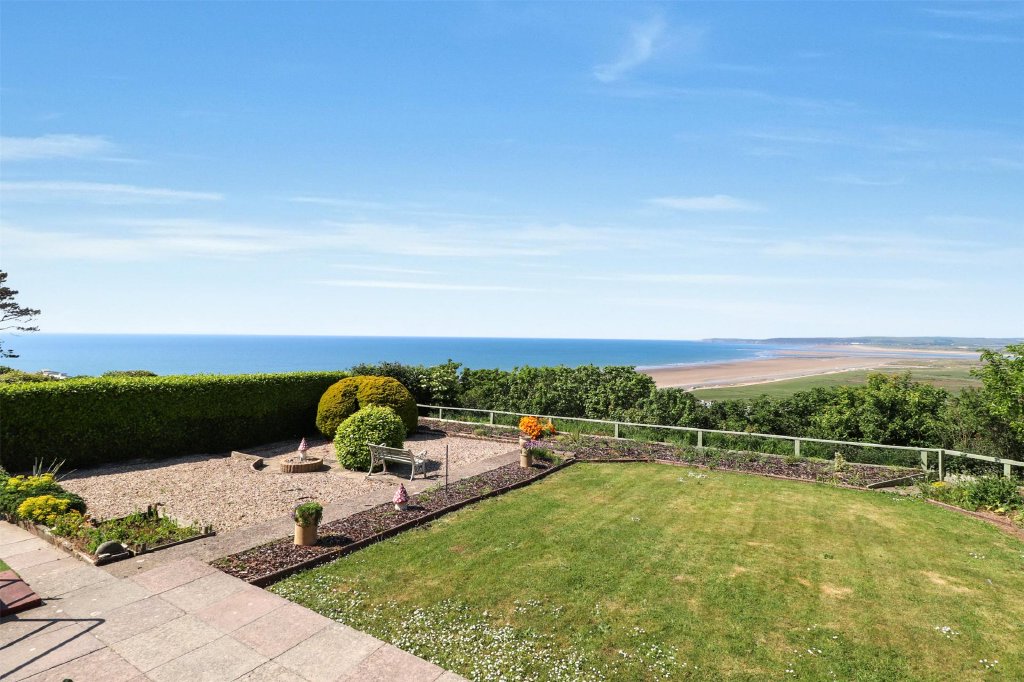 At the rear of the property, the garden provides a quiet retreat, perfect for alfresco dining or just relaxing outdoors while taking in the incredible views of Westward Ho! village and beach. The garden is landscaped with well-maintained lawns, flowerbeds, and a mix of shrubs and trees. There's ample space for a patio area where you can set up a dining table or loungers to enjoy the fresh air and panoramic views.