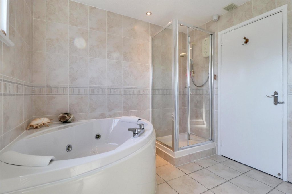 The family four-piece bathroom can be found centrally on the landing and is just as stylish as the rest of the property. With sleek fittings, a spacious corner shower and a large corner bath.