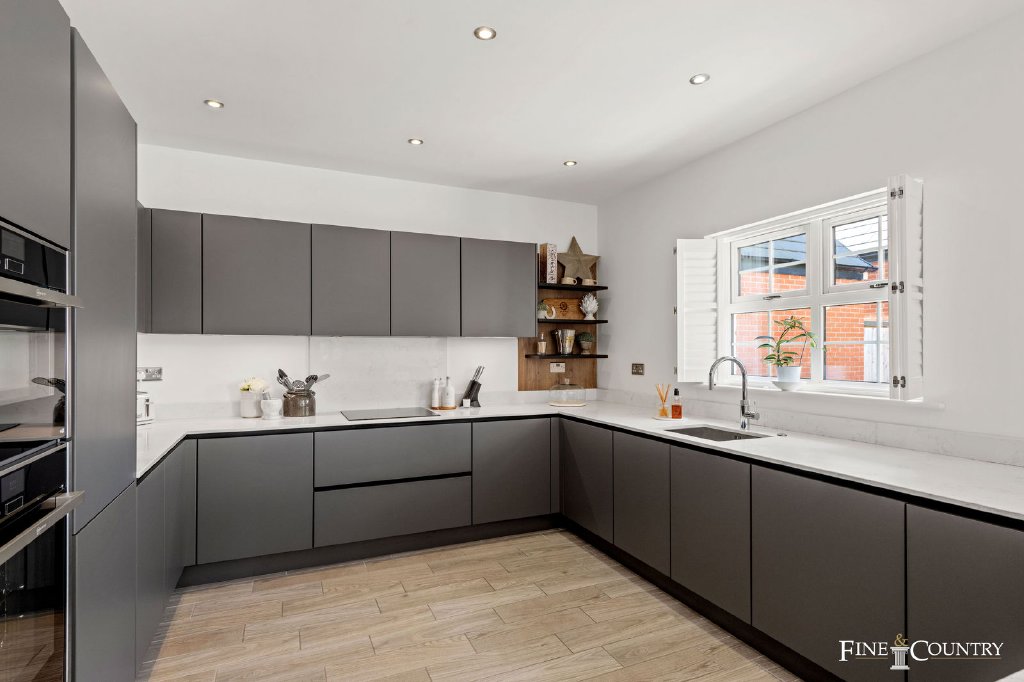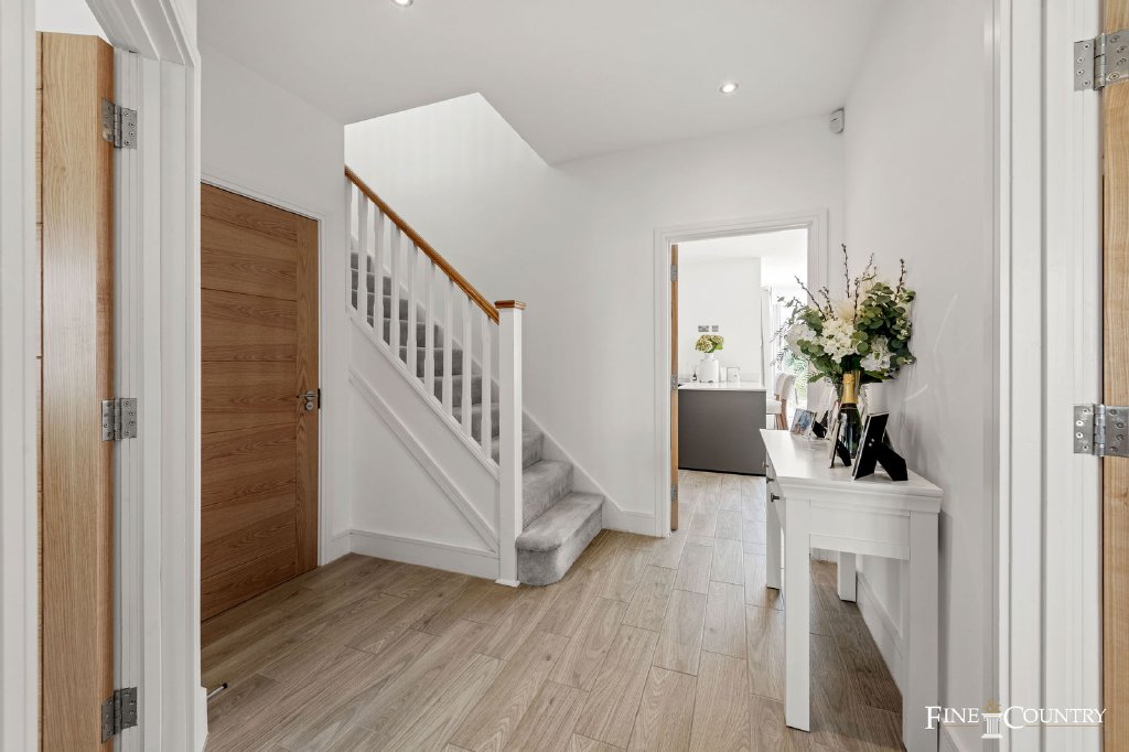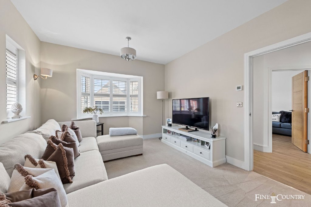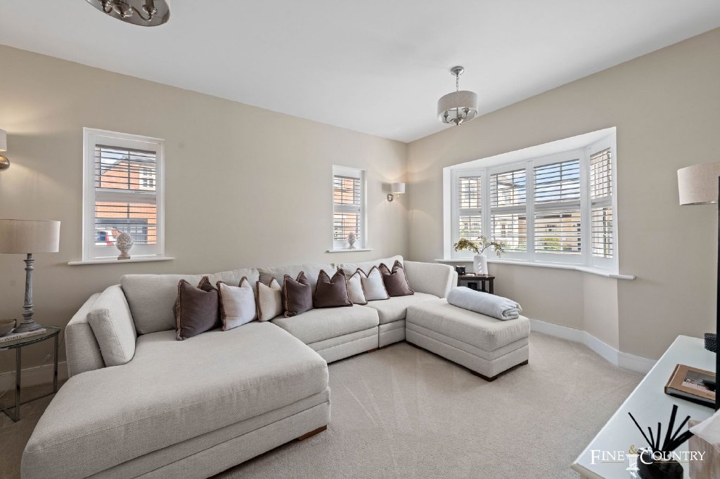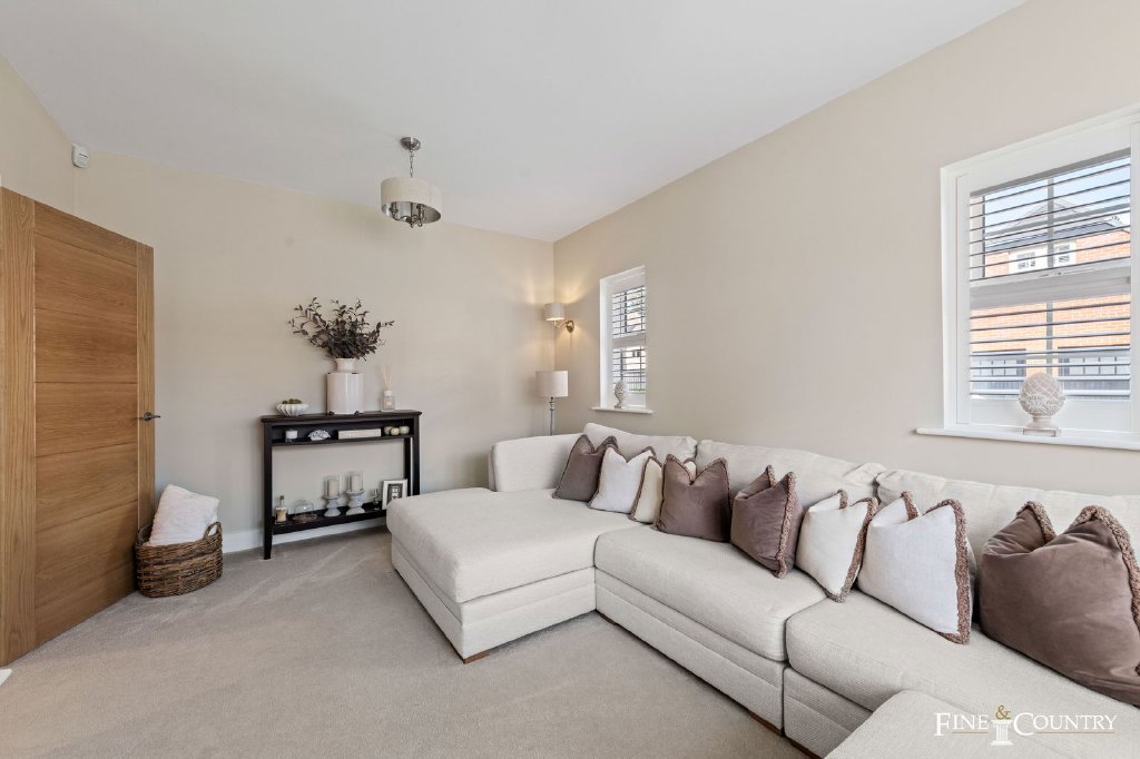 The hallway creates an immediate welcome, leading to two formal rooms at the front. To one side lies a study with a broad bay window, the perfect setting for a quiet home office, library, or playroom. Opposite is the sitting room, decorated in calm neutrals with warm brown accents, creating a restful retreat away from the busier areas of the house. The vendor says that even after four years, the décor still feels fresh, and the atmosphere throughout the house is one of calm sophistication.
