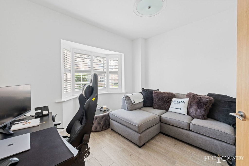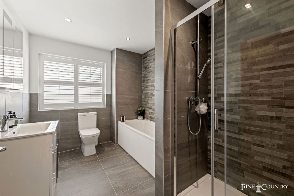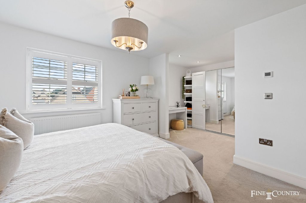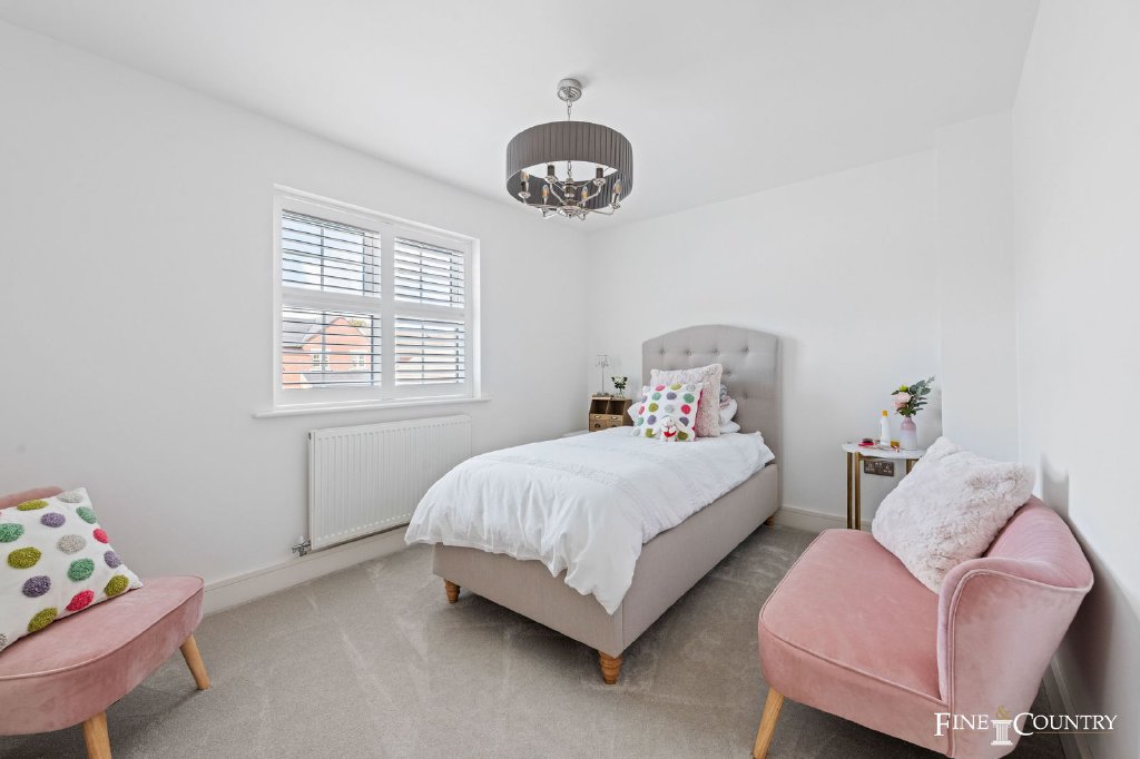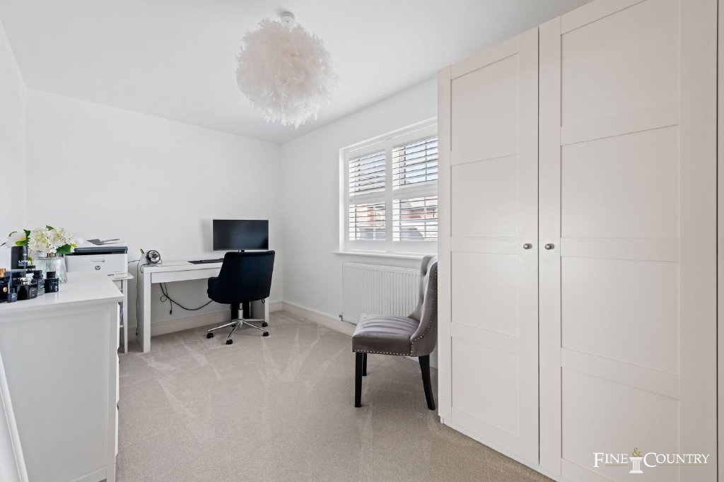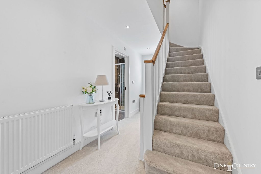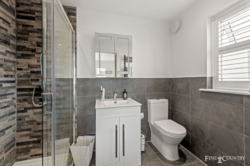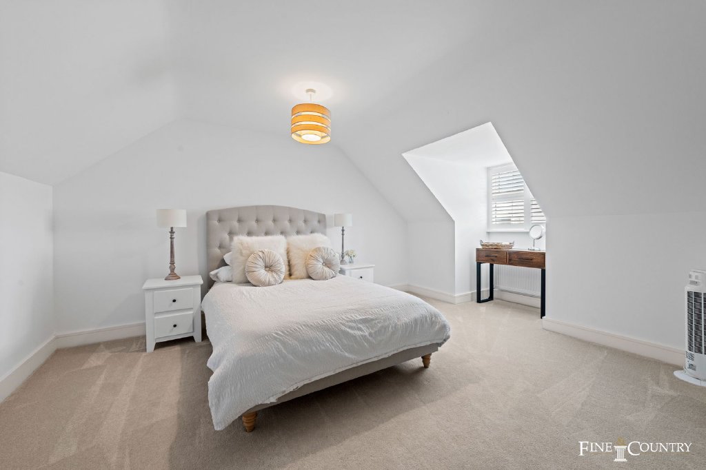 The second floor is devoted to a substantial fourth bedroom with its own en suite shower room. Tucked beneath the eaves yet filled with light, it offers great flexibility, whether as a guest suite, a teenager’s hideaway, or even a secondary workspace.