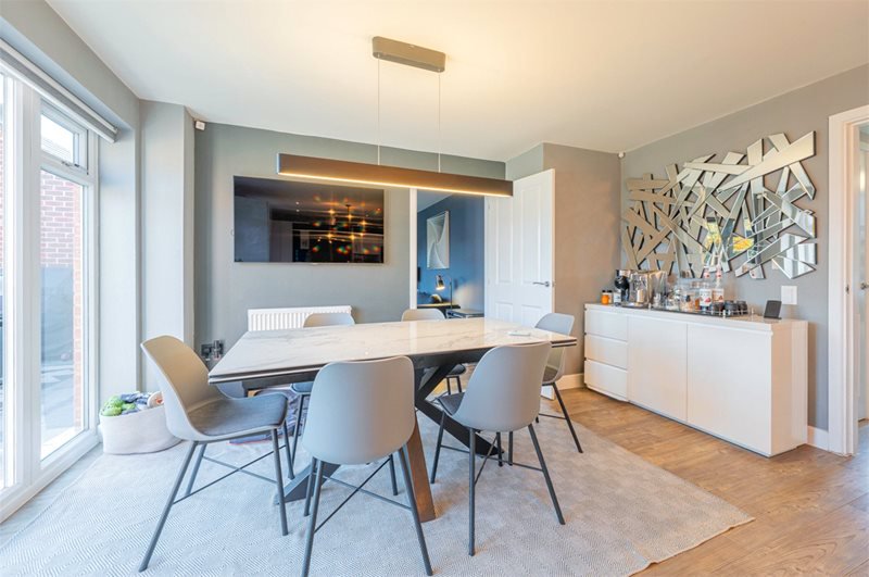 Extending to approximately 2,325 sq ft and arranged across three floors, this impressive modern property offers versatile and well-balanced accommodation, perfectly suited to contemporary family living. Beautifully presented throughout, it combines generous reception space with thoughtfully designed bedrooms, all within easy reach of Warwick town centre, Leamington Spa, and excellent local schools.