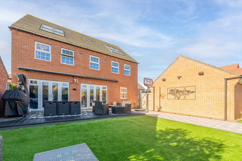 Built in 2018 and set on the popular Orton Road, this well-presented detached property offers generous proportions, flexible living spaces, and a landscaped rear garden terrace designed for modern family life. Driveway parking, a detached double garage, and a private rear garden further enhance its appeal.