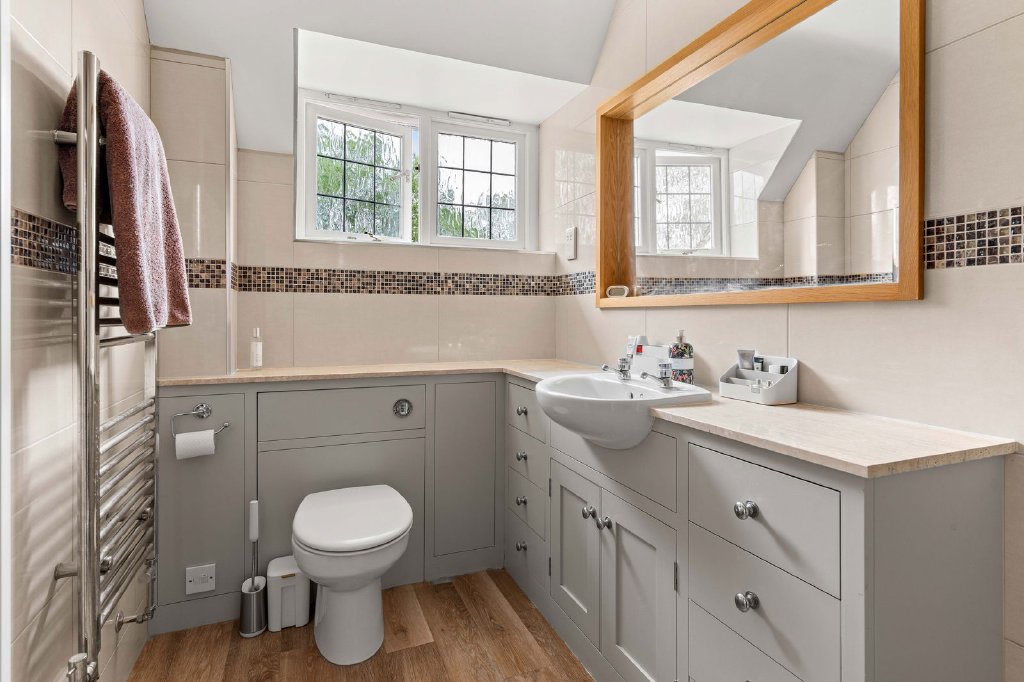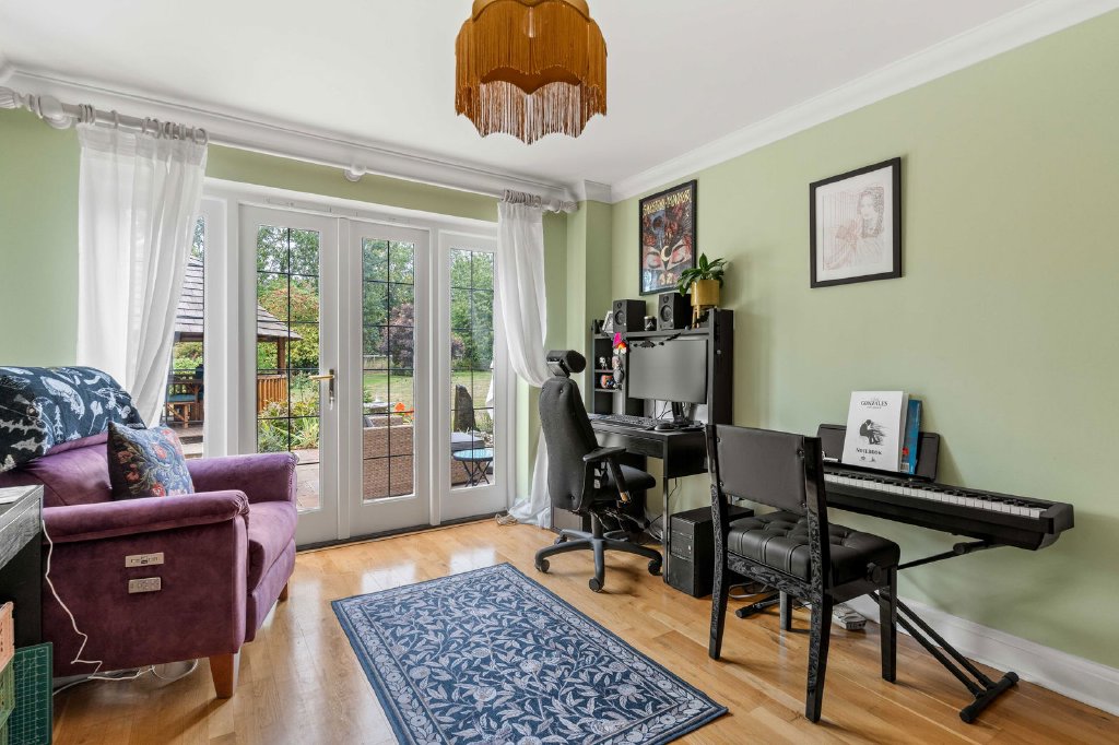 The first floor offers five generously sized bedrooms, two with en-suites, providing comfort and flexibility for family life. One bedroom is currently arranged as a home office, ideal for remote working or quiet study, while the remaining rooms benefit from excellent natural light and adaptable space to suit individual needs.