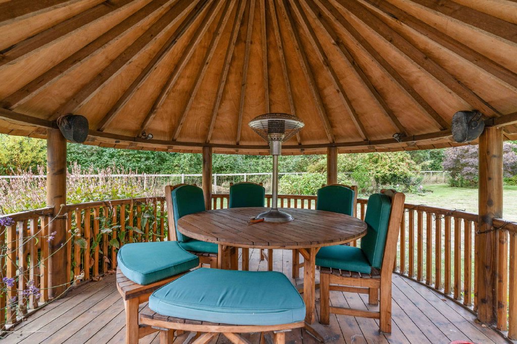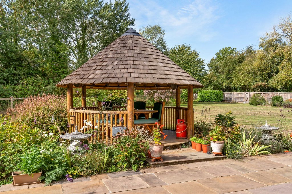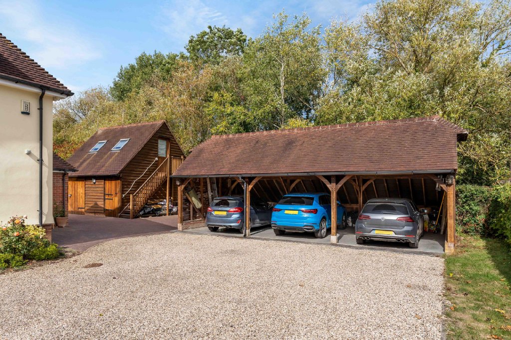 Set within a beautifully landscaped plot of approximately 0.65 acres, surrounded by open countryside that creates a sense of peace and privacy. The property is approached via an electric-gated entrance leading onto a sweeping driveway and a handsome three-car oak-framed cart lodge with tiled roof. To the rear, a generous sun terrace provides the perfect setting for outdoor relaxation and entertaining, while the charming Breeze House offers a covered al fresco dining area, complete with power and lighting for year-round enjoyment. The gardens are thoughtfully designed and meticulously maintained, enhancing the tranquil setting of this exceptional home being well tended with lawns, flower and shrub borders with a dedicated vegetable growing area and fruit trees. A wonderful way to enjoy home grown produce.