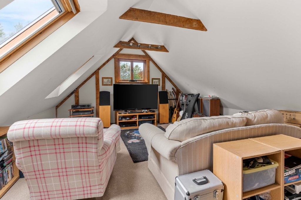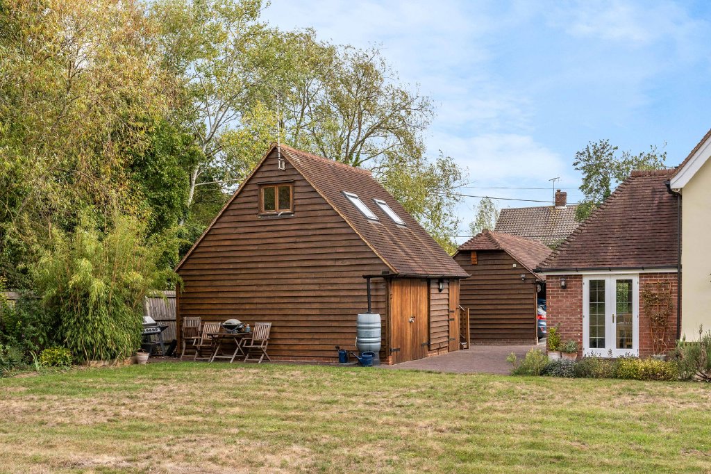 The Barn is a two-storey timber-framed building, currently featuring a good sized workshop space, adjacent room used as a gym and first floor music room/studio space, providing a quiet retreat away from the main house.