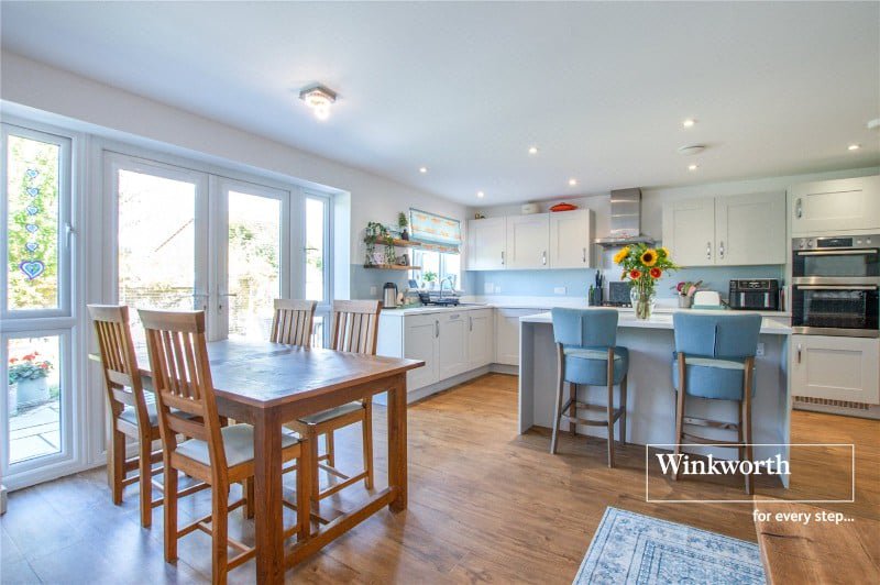 A light and spacious entrance hall welcomes you in and leads to a fabulous kitchen/diner/family room with an integrated kitchen and breakfast bar for everyday casual dining, open plan to a dining area with a family/living space beyond and double doors onto the garden - this is the perfect everyday living and entertaining space! Continuing on the ground floor there is a guest wc, utility room with side access as well as integral access into the garage, an office and a main living room with a log burner and double doors onto the garden.