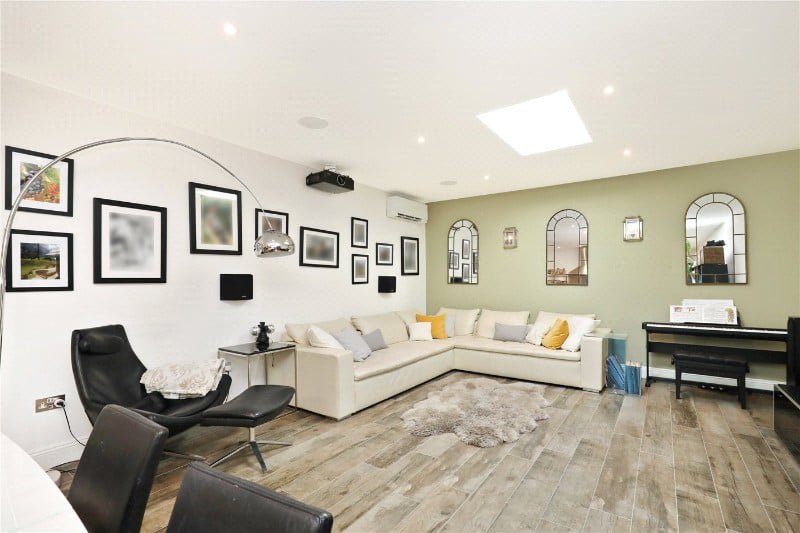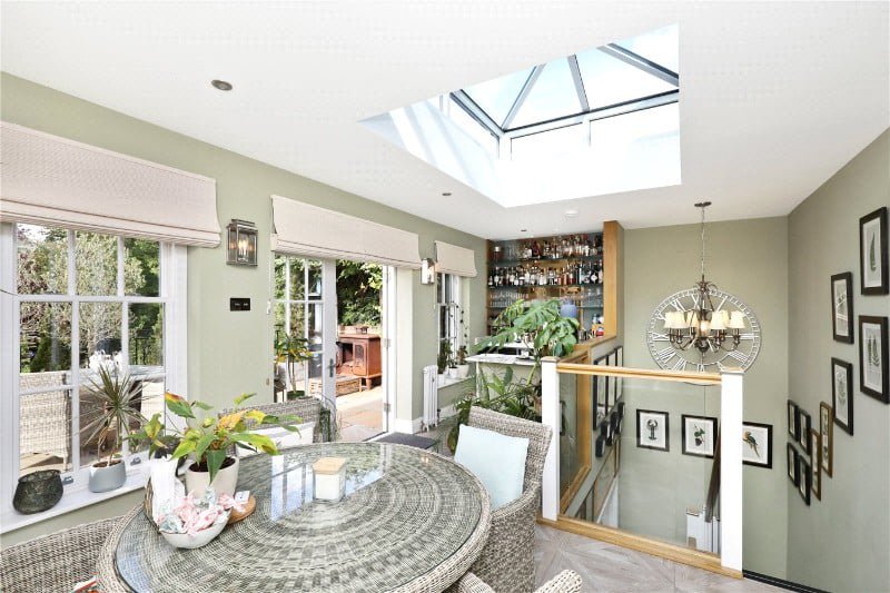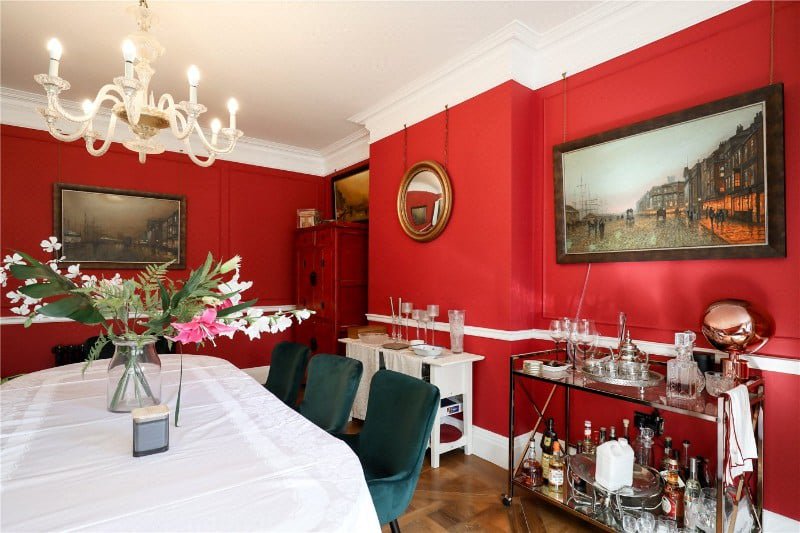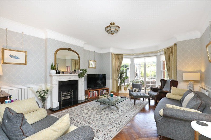 A second rear reception room, accessed from the foyer, has been thoughtfully fitted with a bespoke bar and enjoys panoramic views over the garden.
