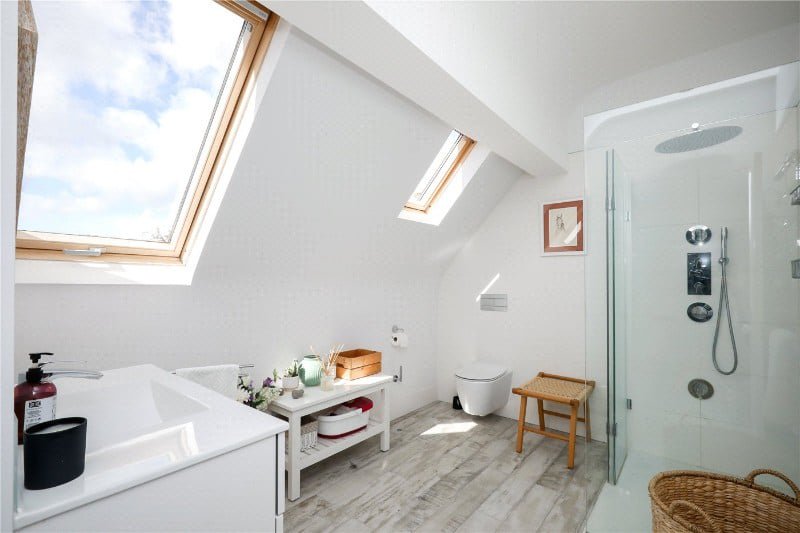 The second floor hosts three well-proportioned bedrooms, one of which also enjoys a private ensuite, while the remaining two are served by a stylish family bathroom. This floor also benefits from access to a large loft area, perfect for seasonal or long-term storage.