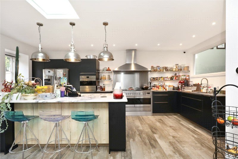 Heading downstairs, you'll discover a spectacular kitchen and dining area—a recent and expansive extension to the original layout. This space has been retrofitted with the latest appliances and premium finishes, making it the heart of the home. Adjacent is a large walk-in wine cellar, ideal for collectors or entertainers alike.