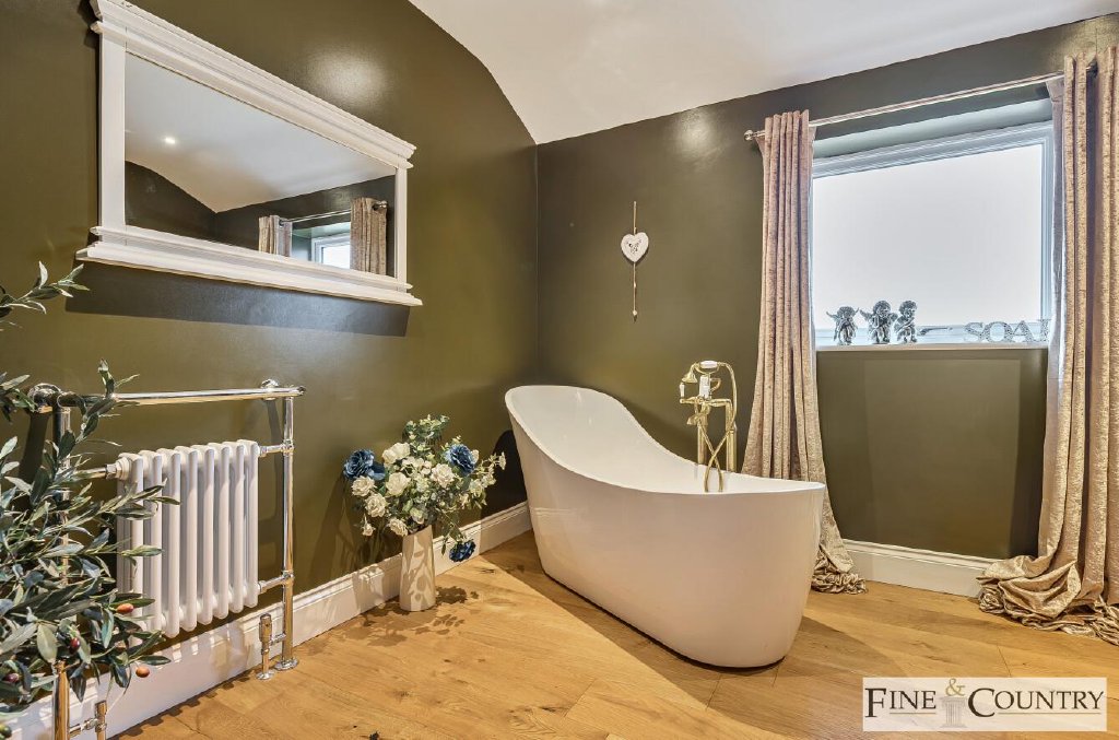 Outside, manicured lawns, a large gravelled forecourt, detached garaging, and mature planting create a true sense of seclusion and sophistication. The boundaries of indoor and outdoor living dissolve effortlessly thanks to extensive decking, multiple access points, and well-planned garden zones.