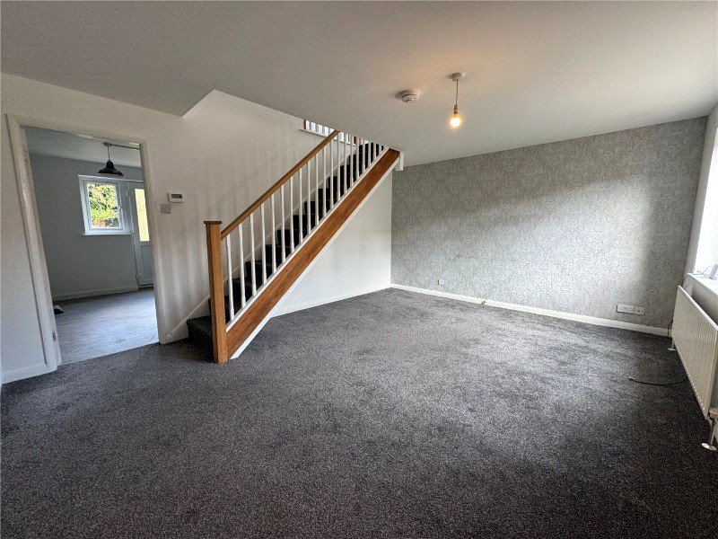 The ground floor comprises a spacious lounge with staircase rising to the first floor and a kitchen/diner fitted with a range of units, work surfaces, and space for dining, with direct access to the rear garden.