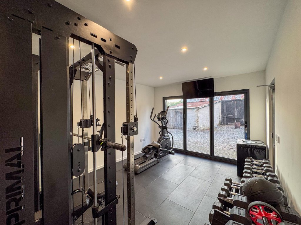 STEP OUTSIDE Complementing the main home is a substantial annexe that significantly enhances the property's versatility and lifestyle appeal. It features a spacious carport and a dedicated gym, while the first floor hosts a self-contained one-bedroom flat, perfect for guests, multigenerational living, or independent accommodation.