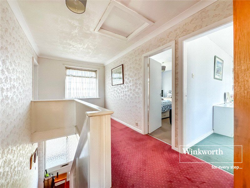 A useful entrance porch welcomes you in and leads to a spacious hallway with a guest cloakroom, there is a good size kitchen with plenty of storage and convenient side access and a dining room which leads to a spacious living room with sliding doors onto the garden. Upstairs there are four excellent size bedrooms with a good range of fitted storage, there is also a large storage cupboard and a bathroom with a bath and overhead shower, wc and hand basin.