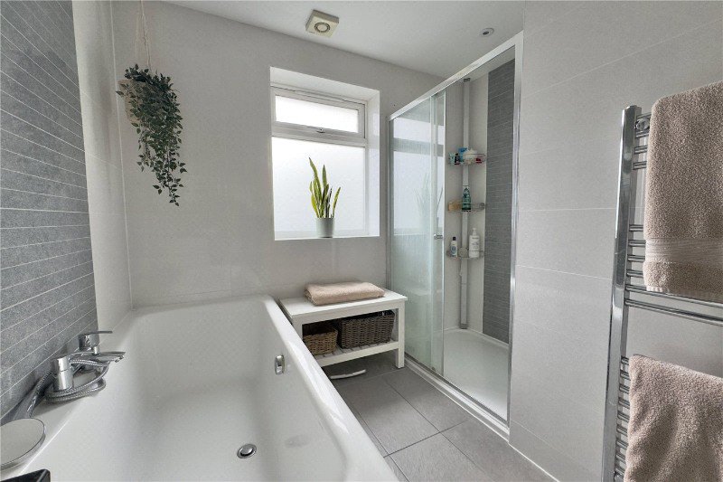 Upstairs in the main part of the house are three further bedrooms and a second family bathroom with a bath and separate shower cubicle. Both bathrooms are finished to a high standard, and there is also a separate downstairs cloakroom for convenience.